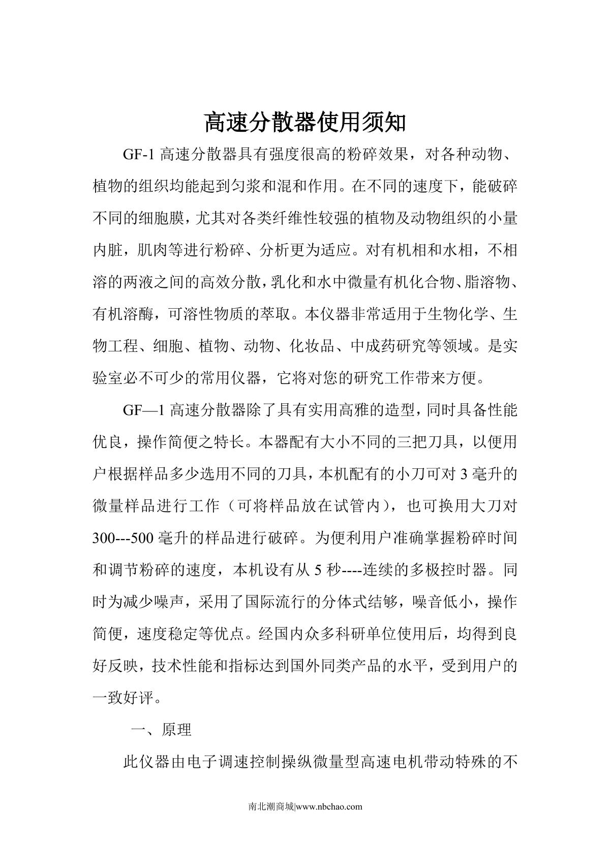 kylinbell GF-1 Time-controlled speed-regulated high-speed disperser Manual,OI