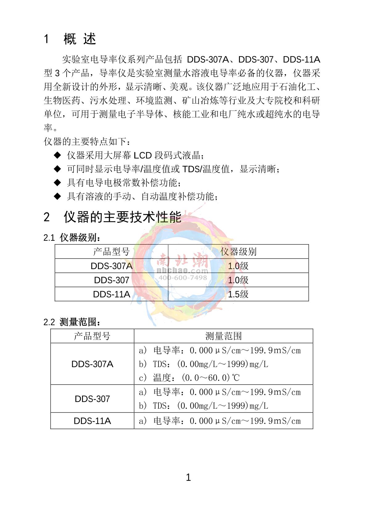 LEICI DDS-307 Conductivity Meter Class 1.0Level 1.00.00μS/cm~200mS/cm0.01μS/cm, automatically switch according to the range¥2170.0SE
