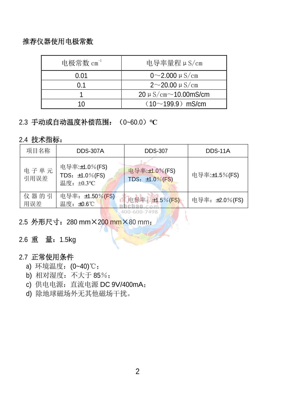 Qiwei DDS-307 microcomputer conductivity meter 0~1999μs/cmConductivity Detector0~199.9μs/cm;200~1999μs/cm;2.00~19.99mS/cm;20.0~199.9mS/cm±1.0% F.S¥540.0SE -