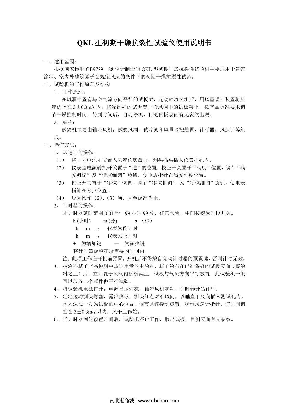 - 3SHIBO QL Initial drying crack Tester Manual