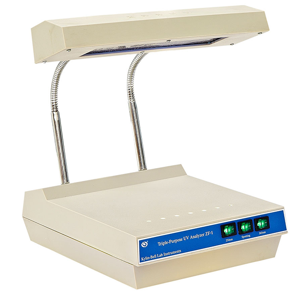 This instrument is composed of ZSZ---8---A and ZSZ---8---B ultraviolet lamps and filters. ZSZ---8---A emits (shortwave) 254nm, ZSZ---8---B emits (longwave) 365nm, and one function emits strong 254nm and 365nm ultraviolet rays respectively, and can also mix two wavelengths at the same time. A 4-watt ordinary fluorescent lamp is installed in the base of the instrument to spot and position and illuminate the analysis plate.