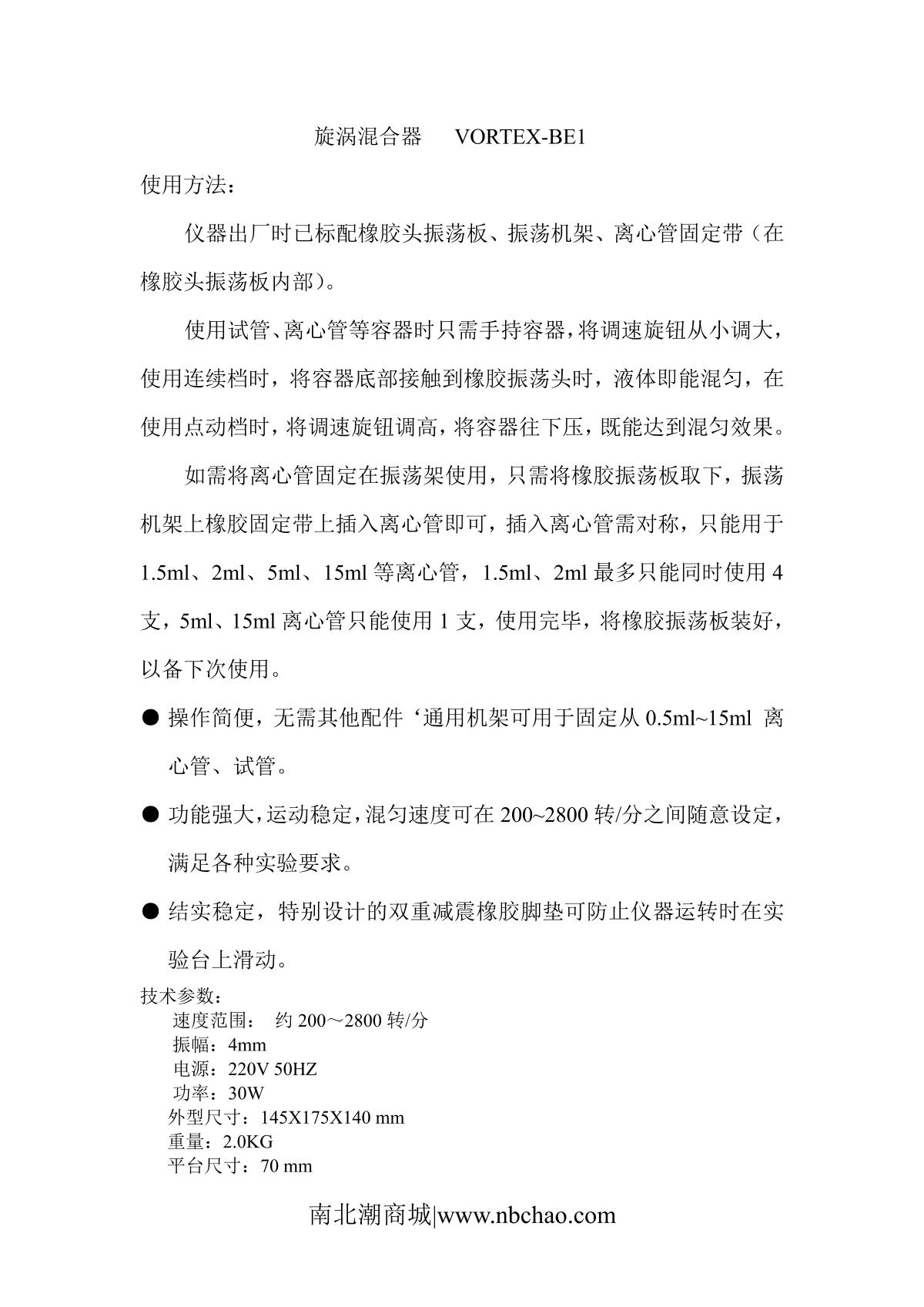 kylinbell VORTEX-BE1 Vortex mixer Manual,OI