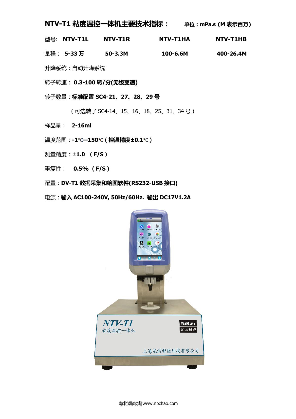 NiRun NTV-T1L Viscosity temperature control machine brochure