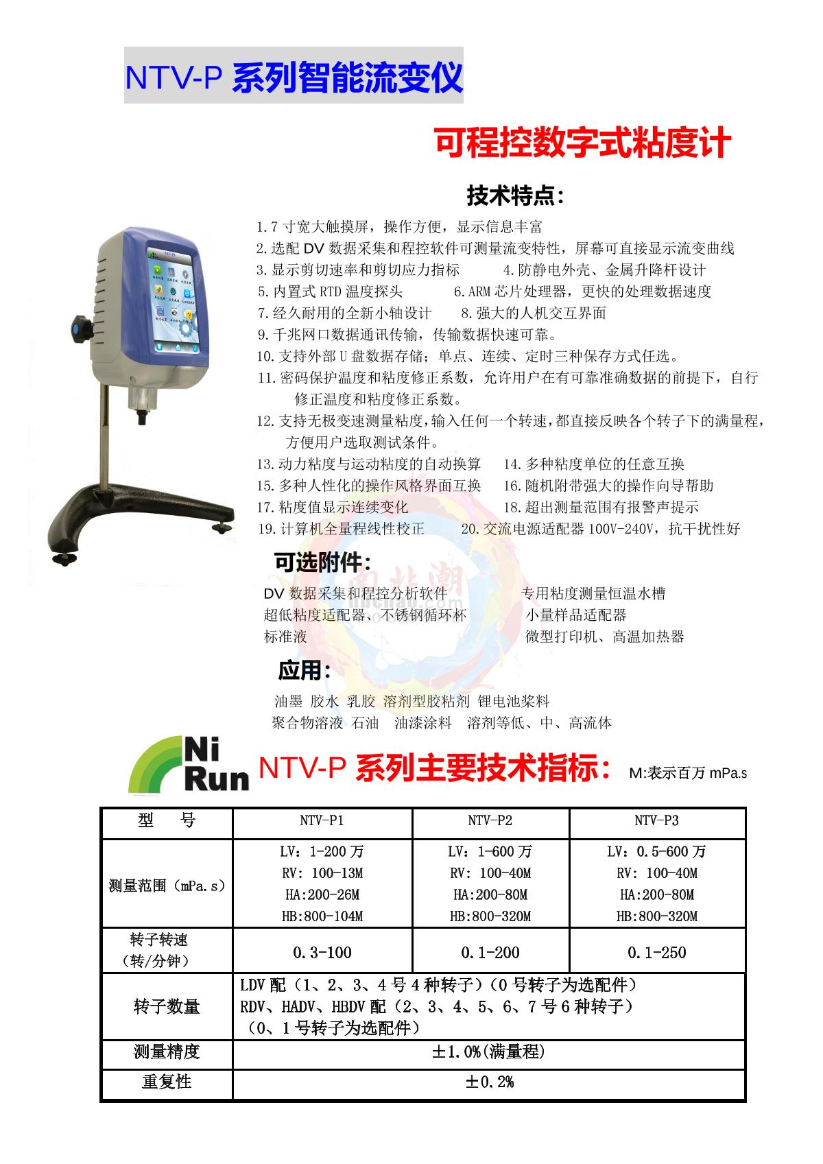 NIRUN NTV-P1HB Programmable Digital Viscometer swirl/spin Viscometer 800~104M mPa.sTouch screen800~104M mPa.s2#、3#、4#、5#、6#、7#¥20700.0SE