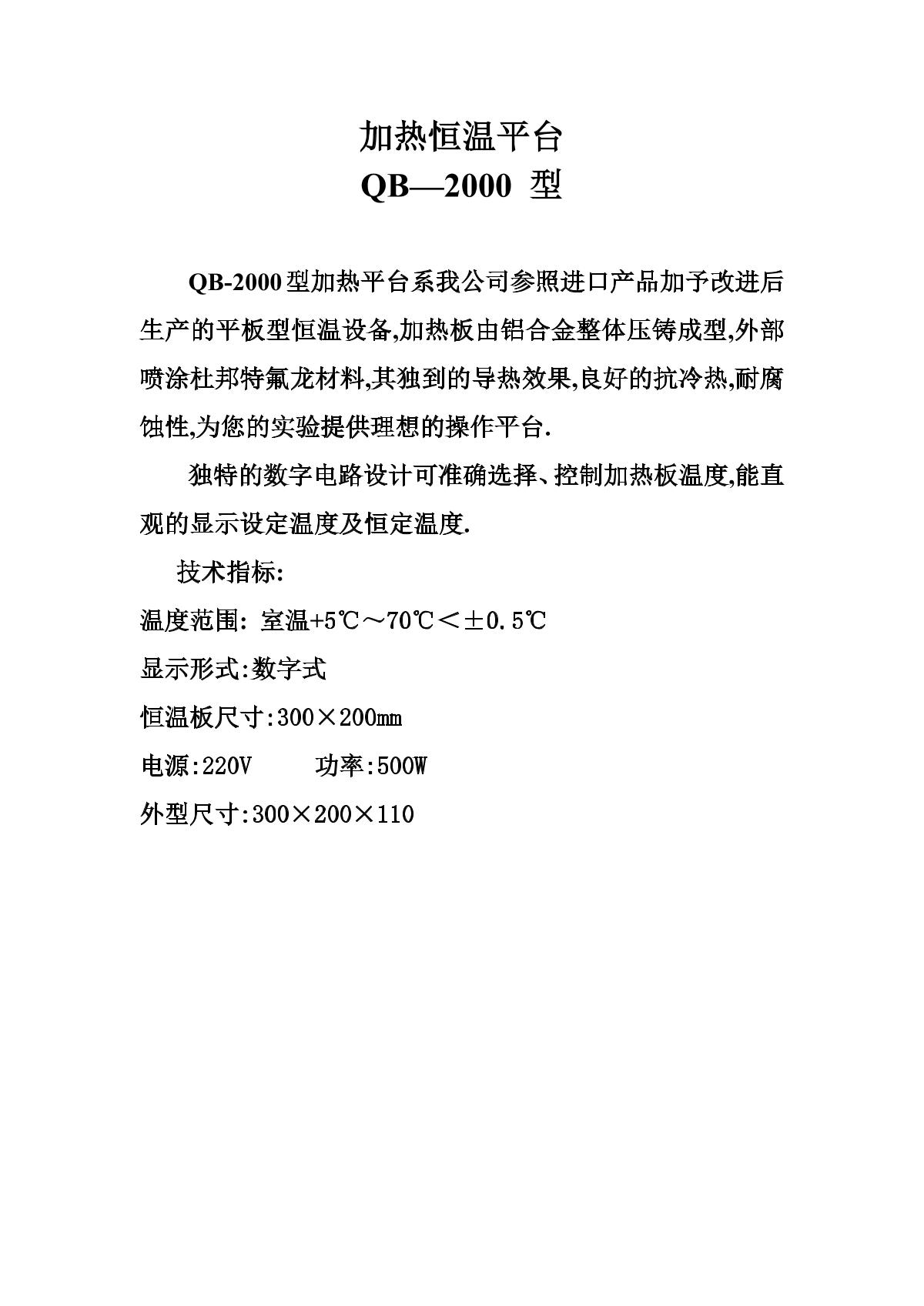 kylinbell QB-2000 Thermostatic heating platform brochure