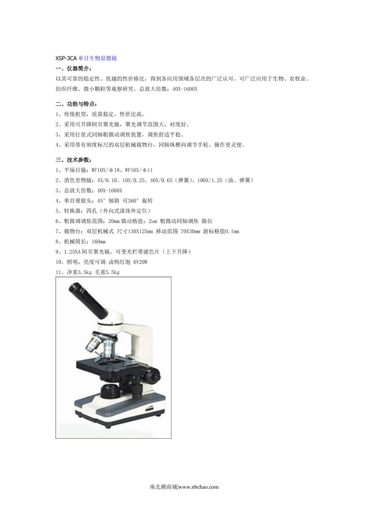 Teelen XSP-3CA Monocular Biological Microscope brochure