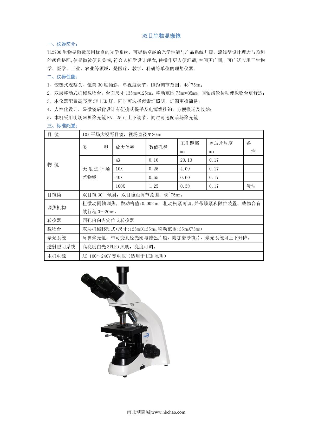 Teelen TL2700A Binocular Bio-Microscope brochure