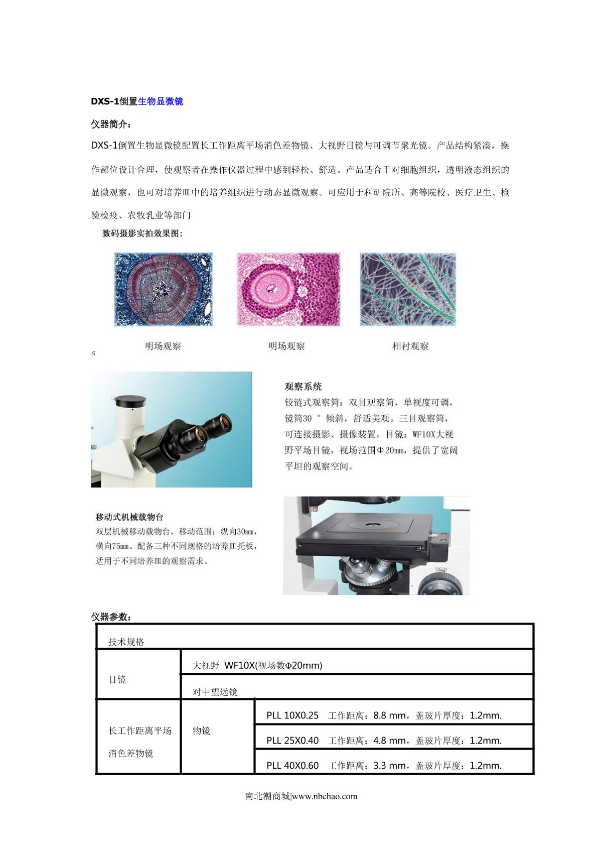 Teelen DXS-1 Inverted Biological Microscope brochure