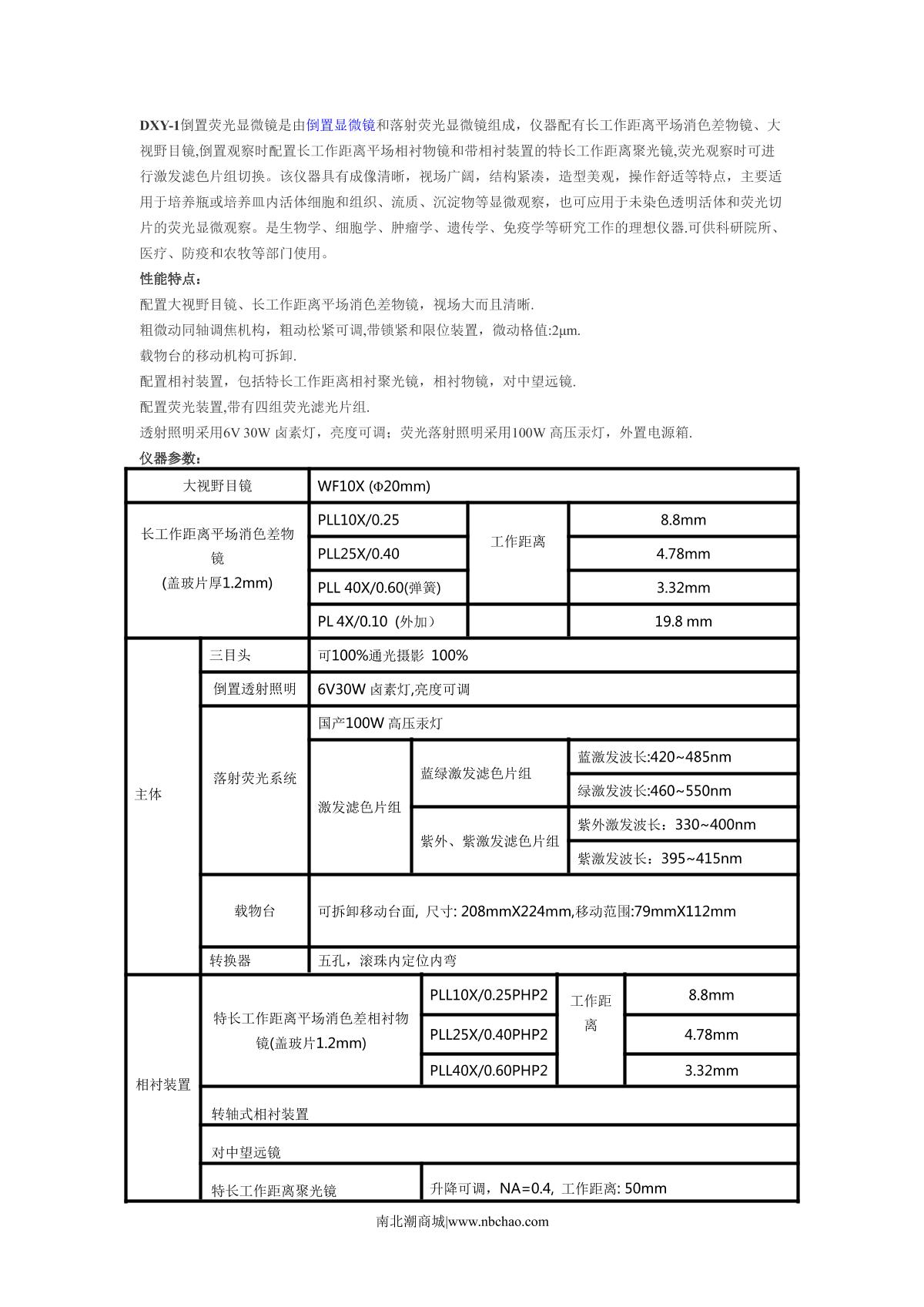 Teelen DXY-1 Inverted Fluorescence Microscope brochure