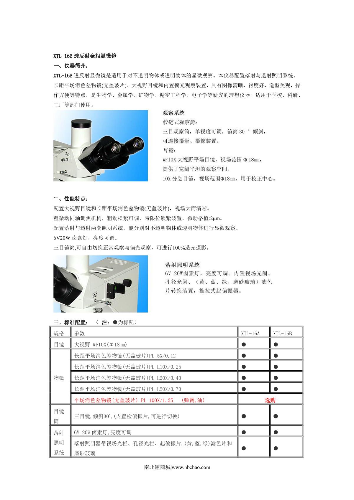 Teelen XTL-16B Metallurgical Microscopy brochure