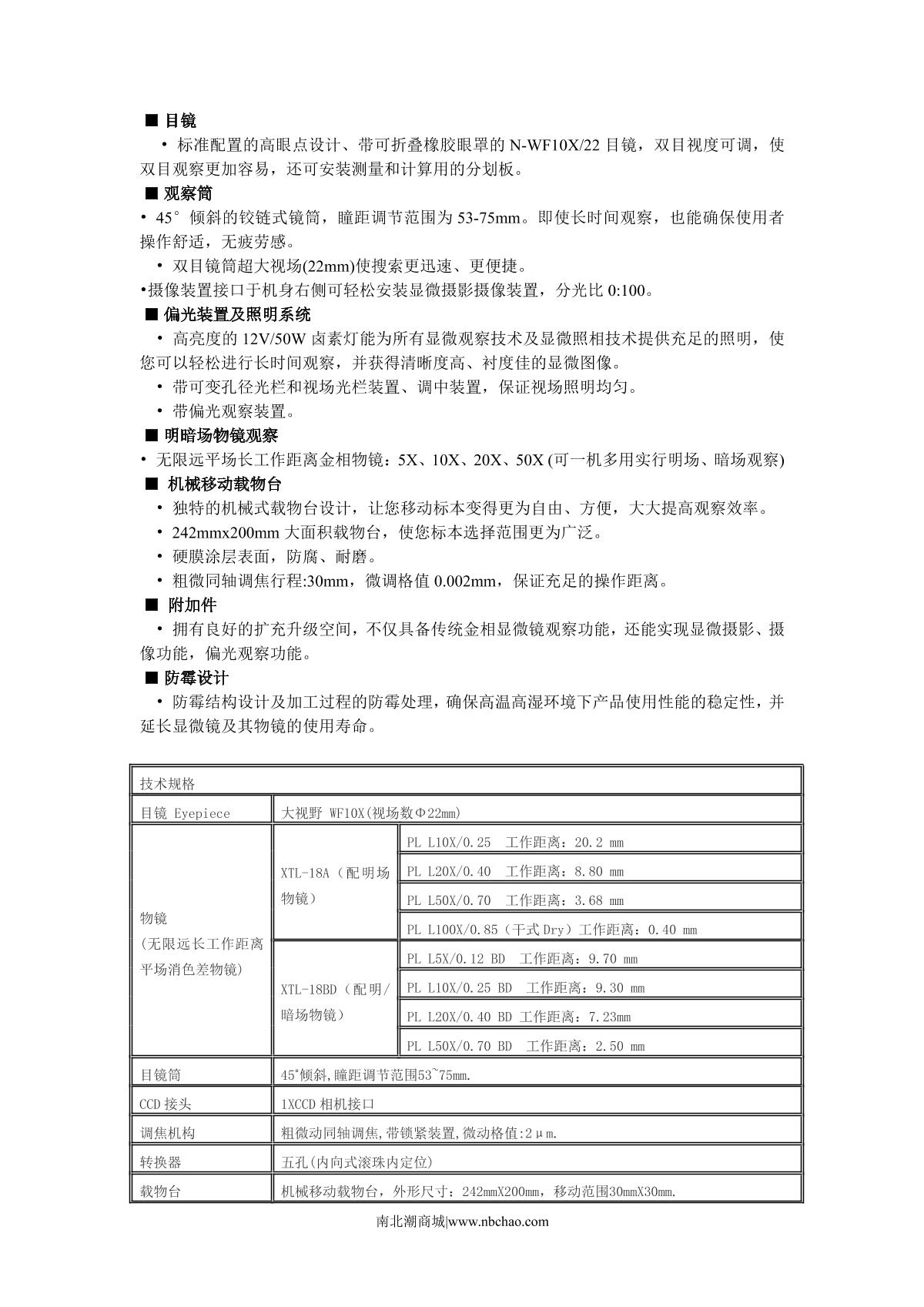 Teelen XTL-18BD Metallurgical Microscopy brochure