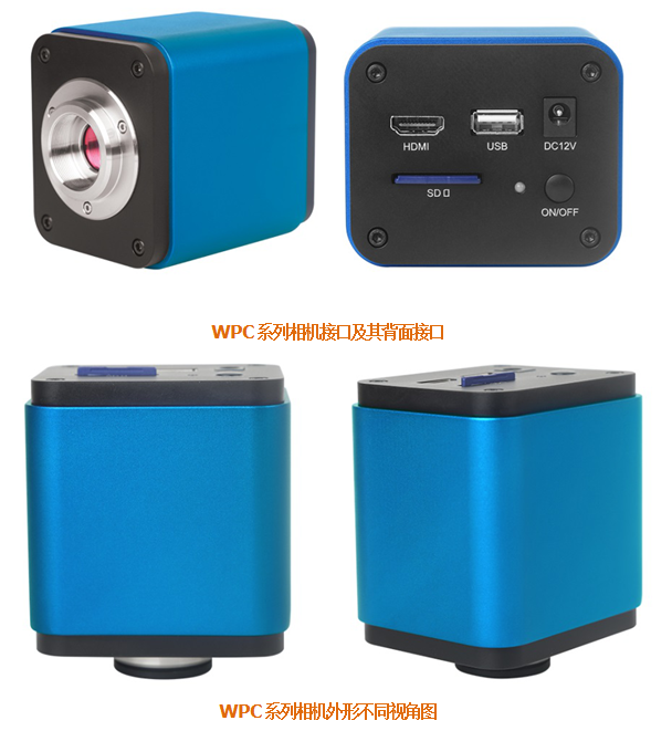 WPC series camera is a CMOS camera designed by Dillon Optics that includes a multi-mode output (HDMI+WIFI+SD card) camera, where the X of XCAM means multi-interface), and it uses an ultra-high-performance CMOS sensor. The camera can be connected directly to an HDMI monitor, a computer via WIFI, a smartphone or a notification tablet, and images and videos can be saved on an SD card for on-site analysis and subsequent research.