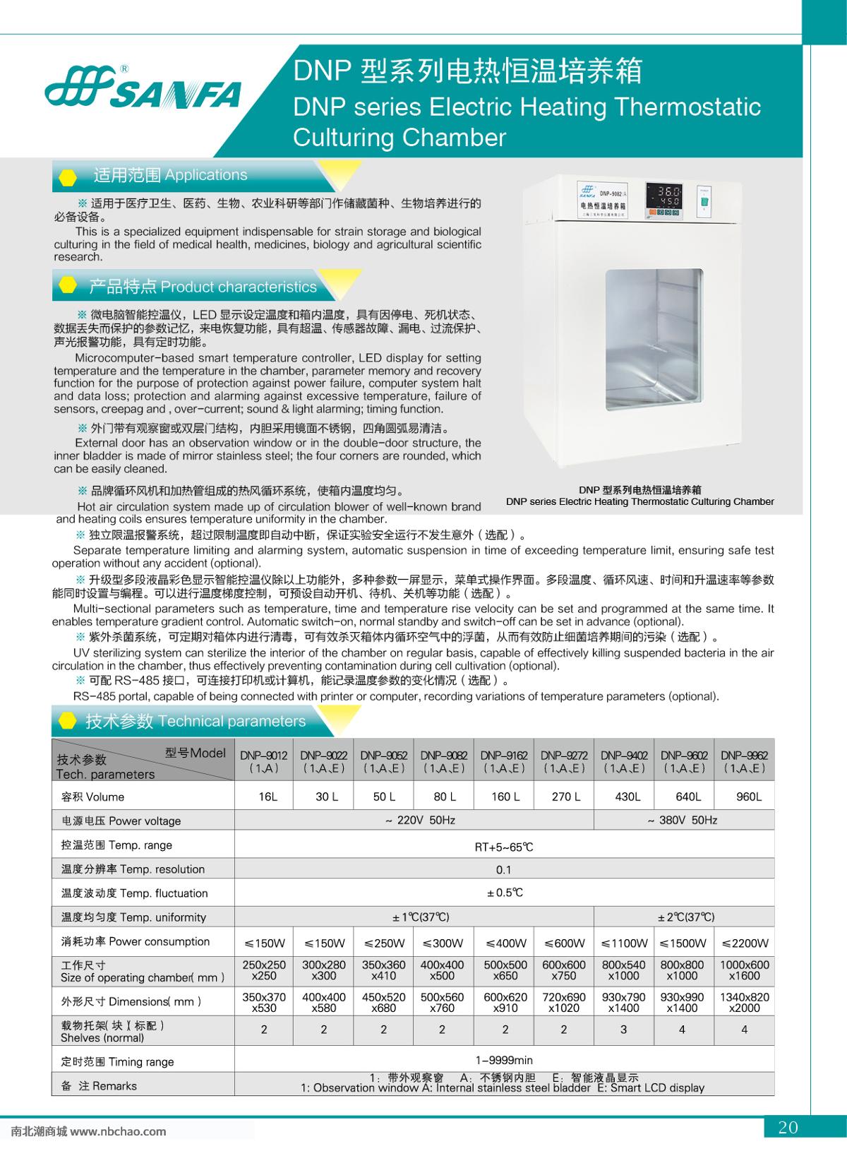- 6sanfa DNP-9602AE Electric Thermostatic Incubator brochure