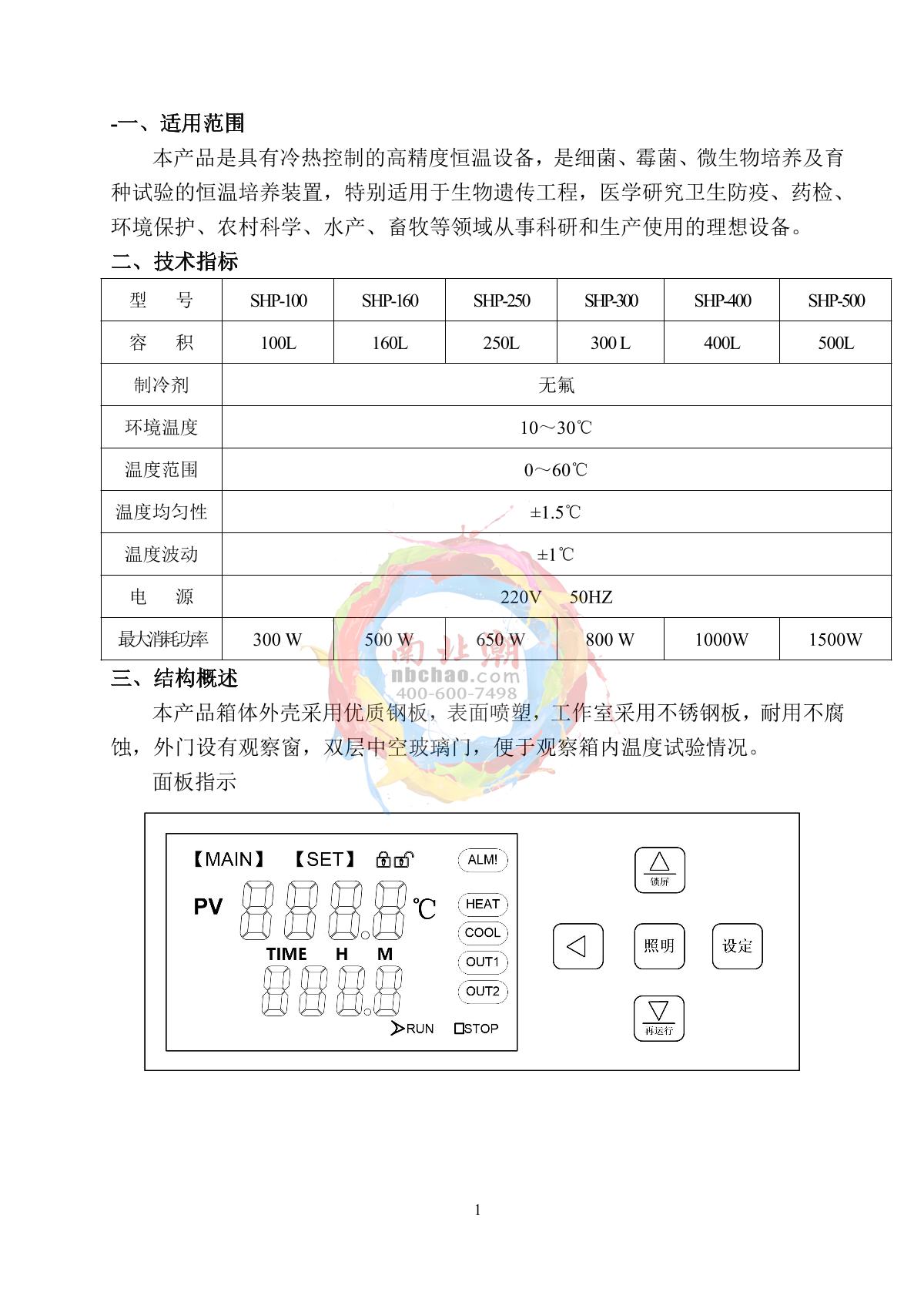 sanfa SHP-400 Biochemical Incubator Manual,OI