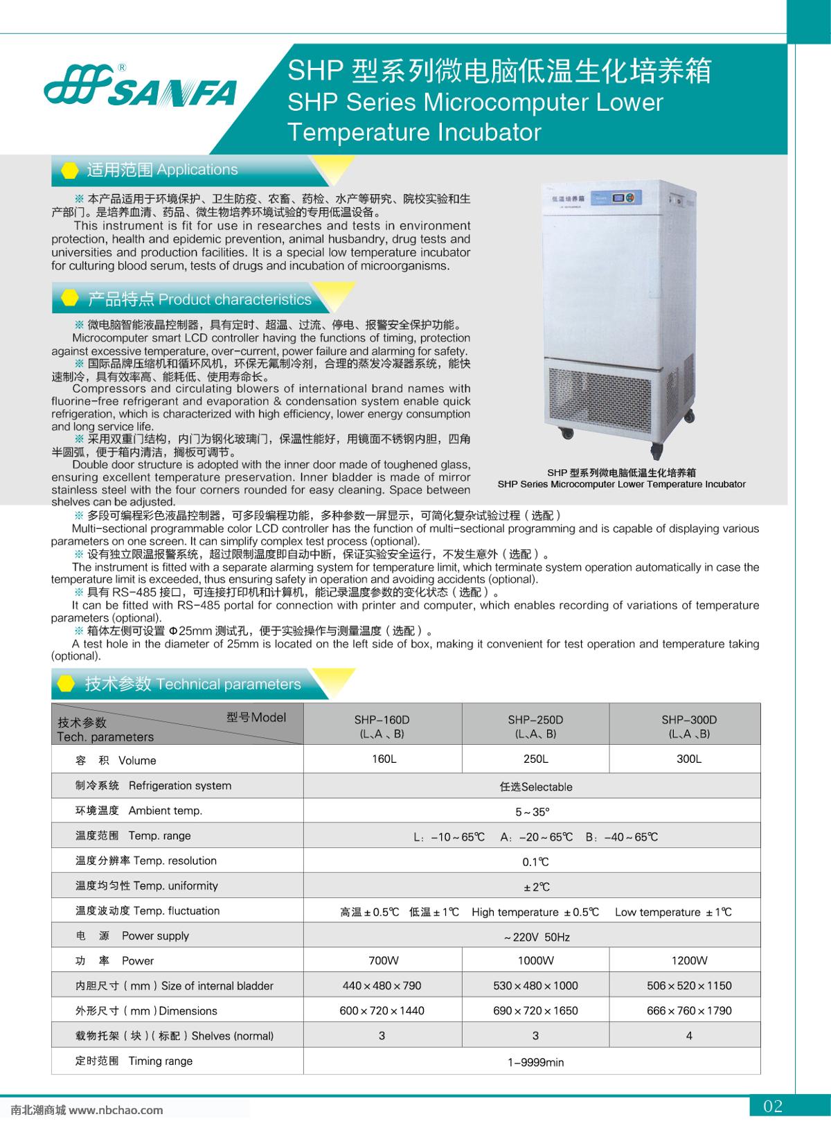 sanfa SHP-160DB Low-Temperature Biochemical Incubator brochure