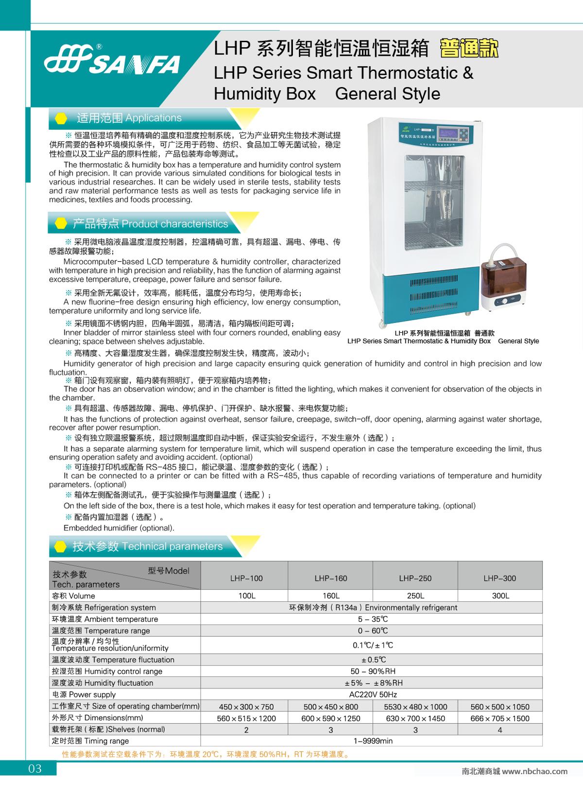 sanfa LHP-160 Constant Temperature and Humidity Incubator brochure