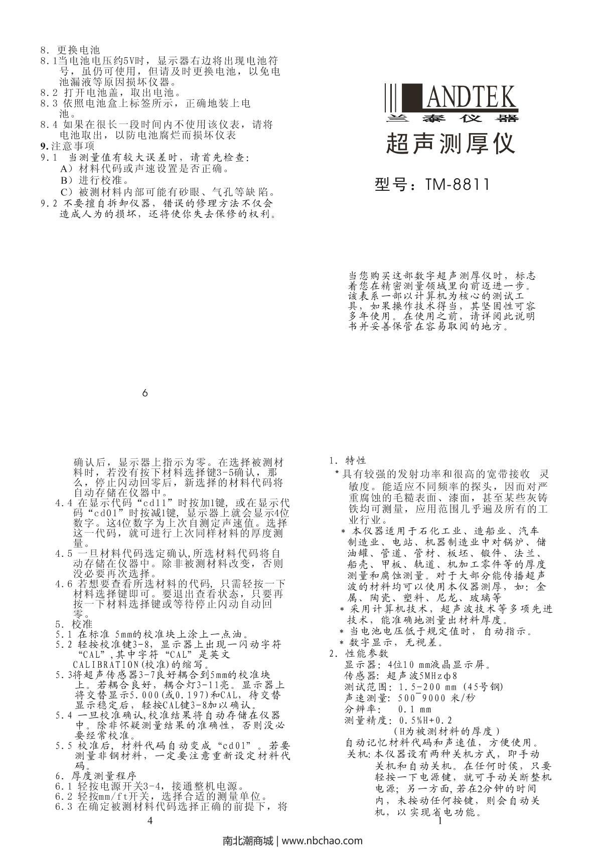 LANDTEK TM8811 Ultrasonic Thickness Gauge Manual,OI