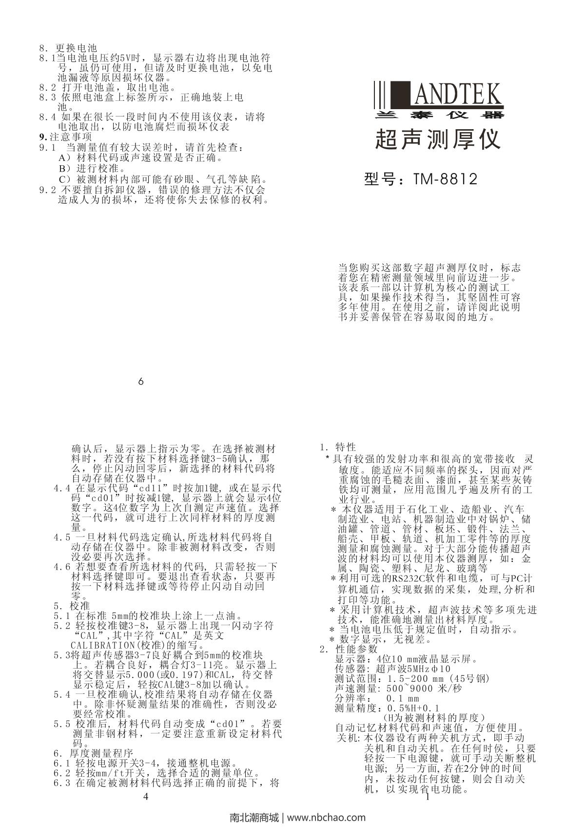 LANDTEK TM8812 Ultrasonic Thickness Gauge Manual,OI