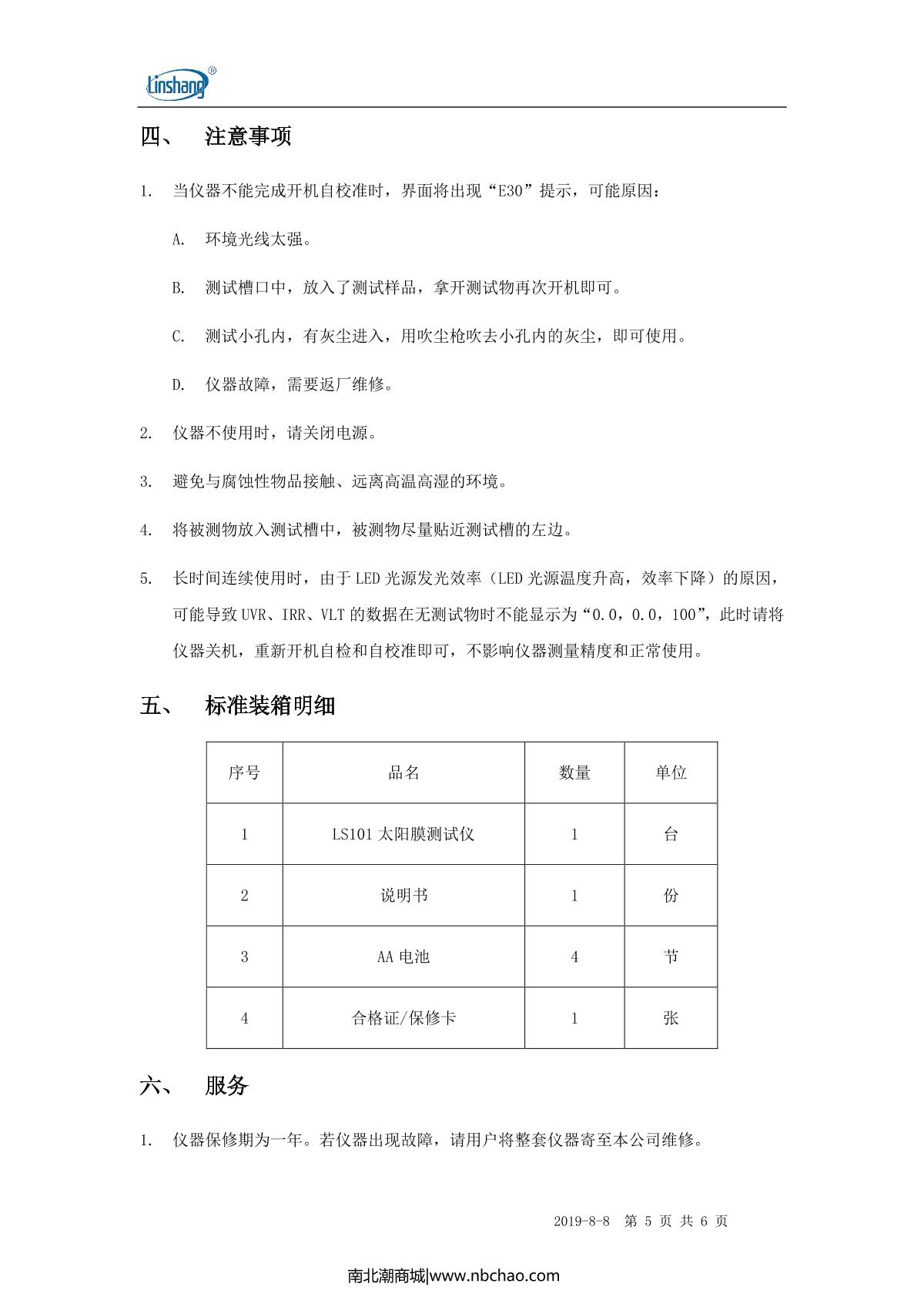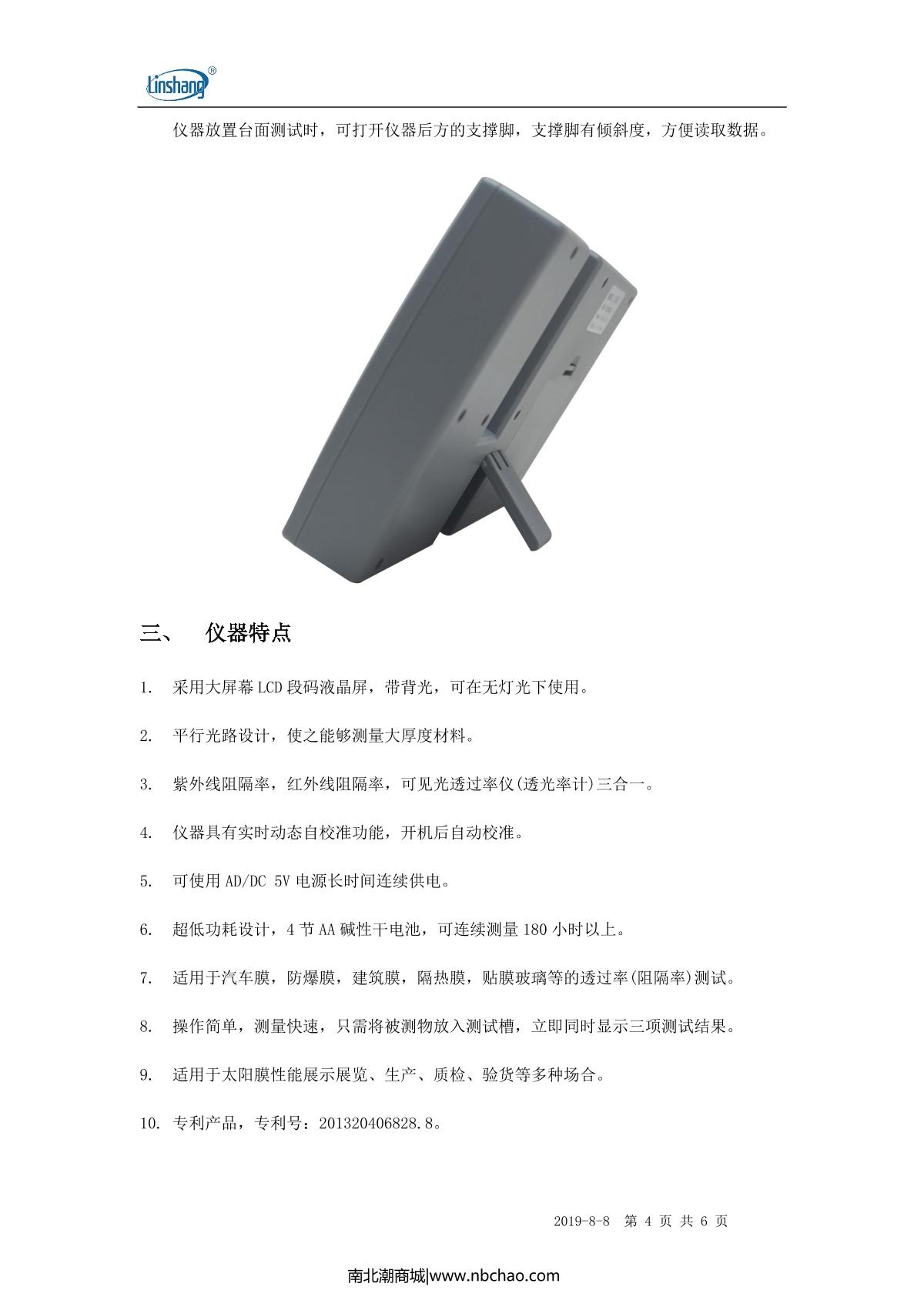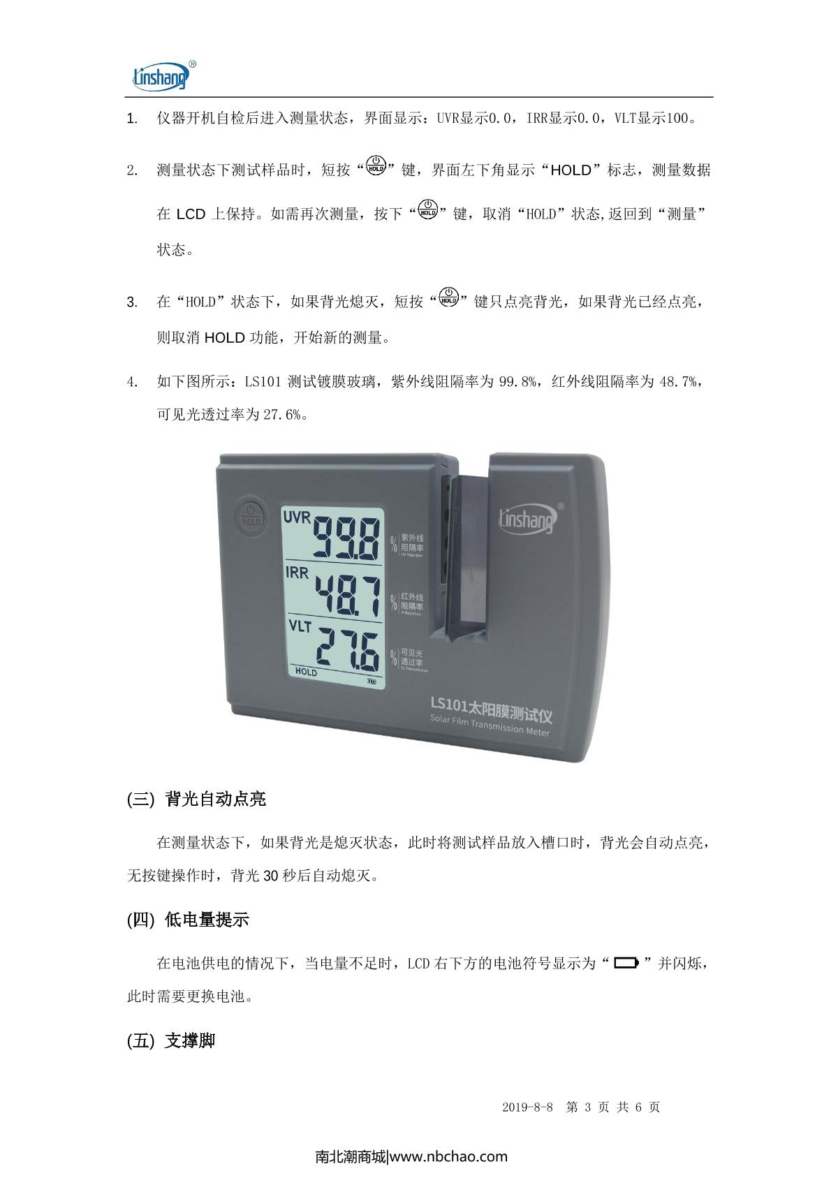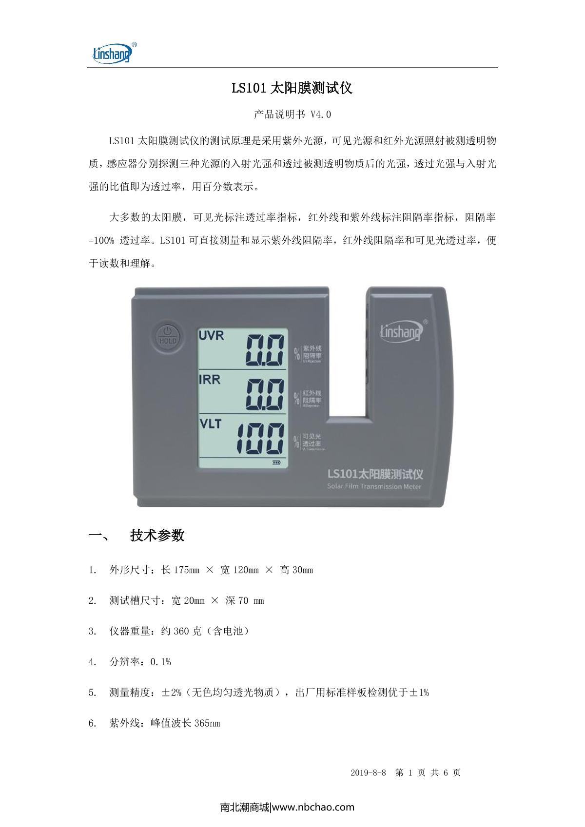 LinShang LS101 Upgraded version of solar film Tester Manual,OI