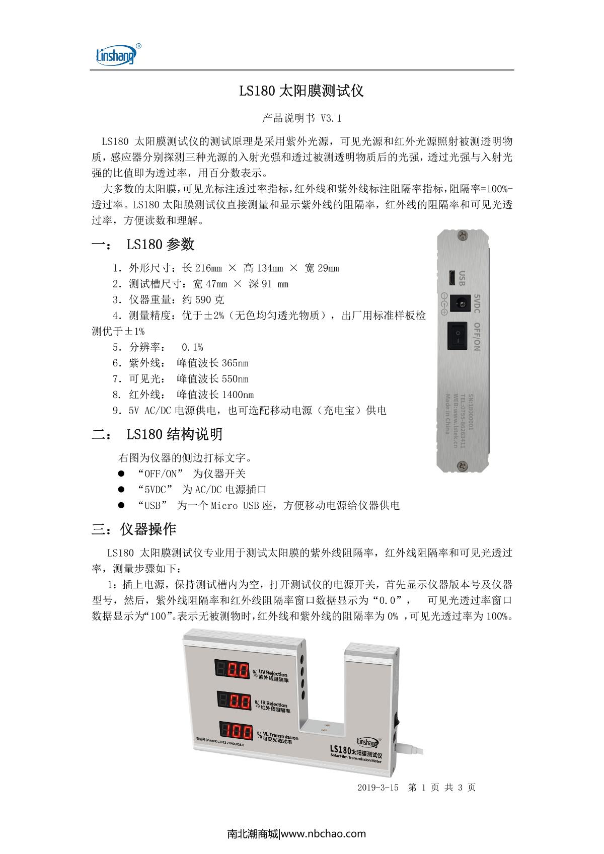 - 3LinShang LS182 Solar film Tester Manual