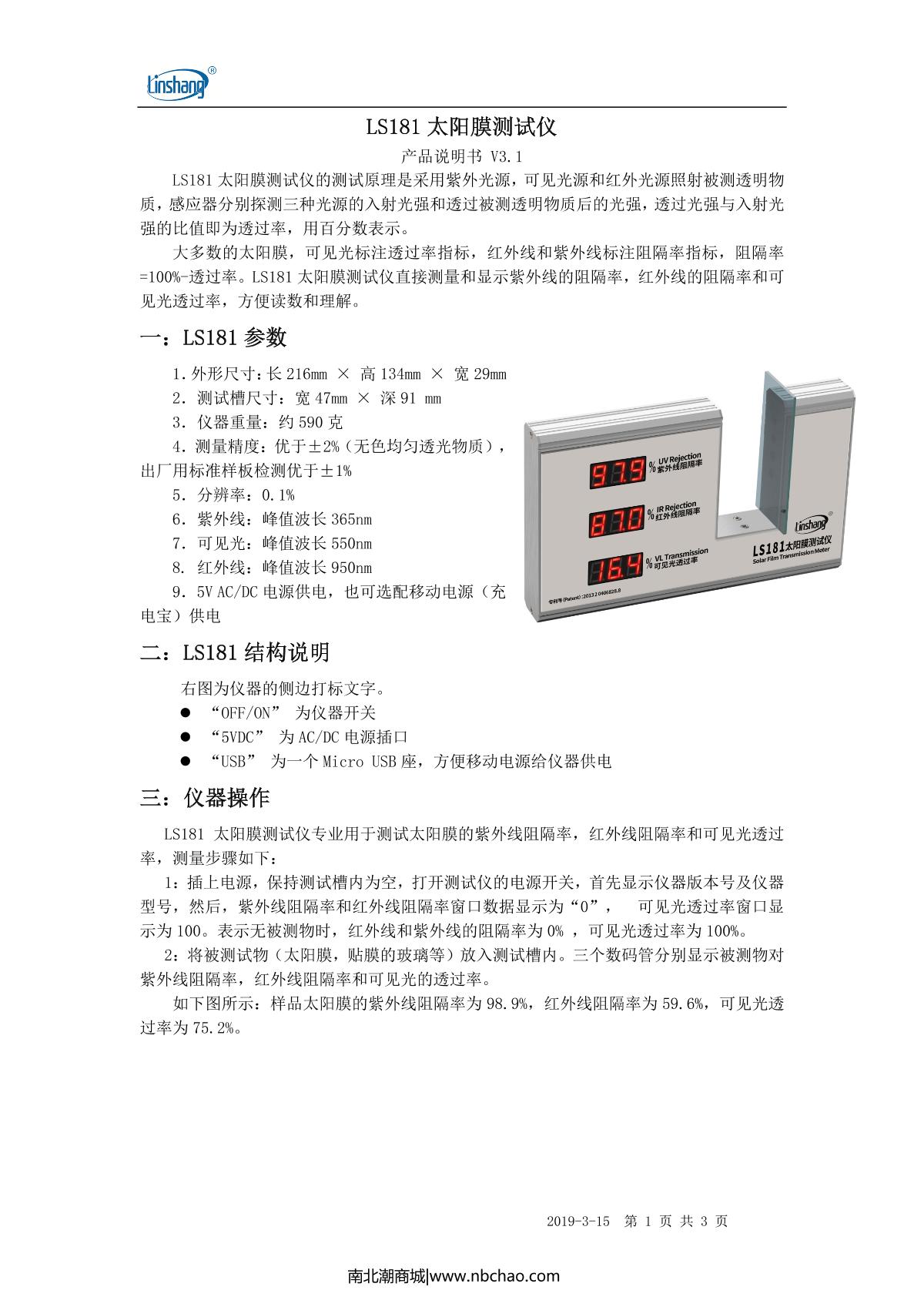 - 9LinShang LS160A Portable Solar Film Tester Manual