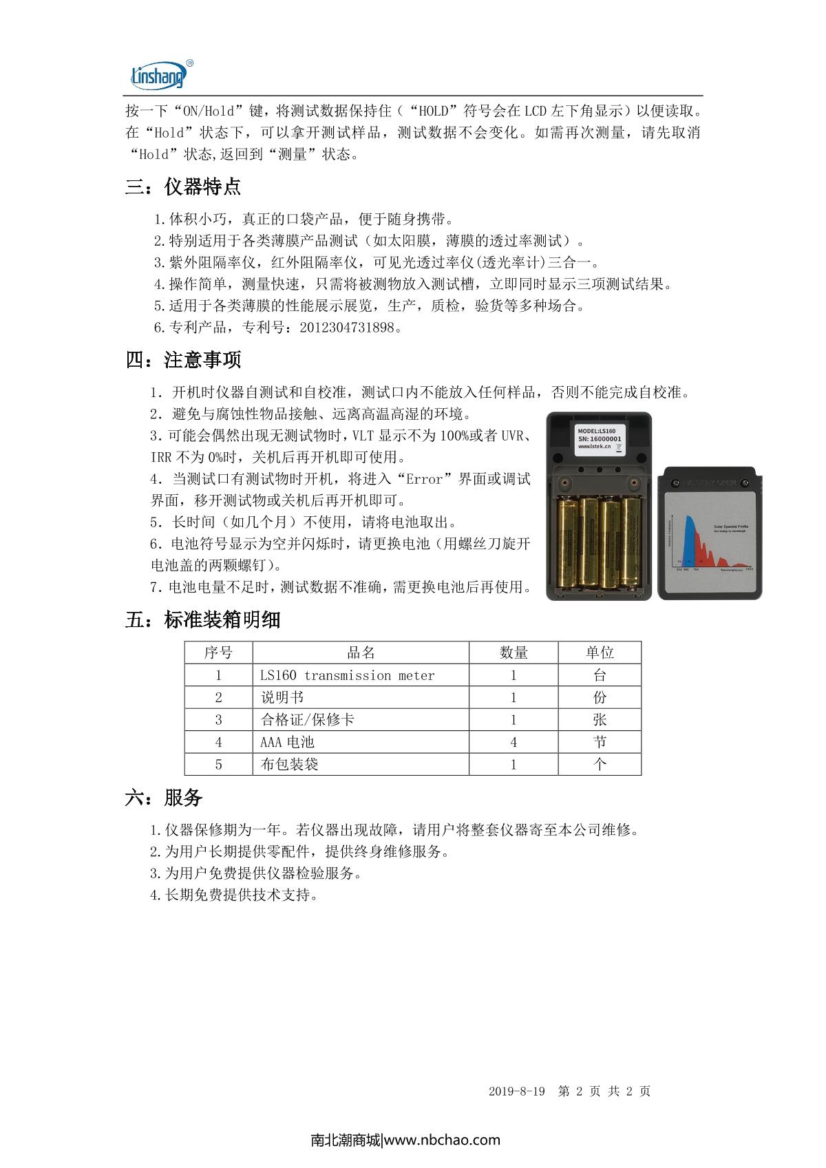 - 1LinShang LS160A Portable Solar Film Tester Manual