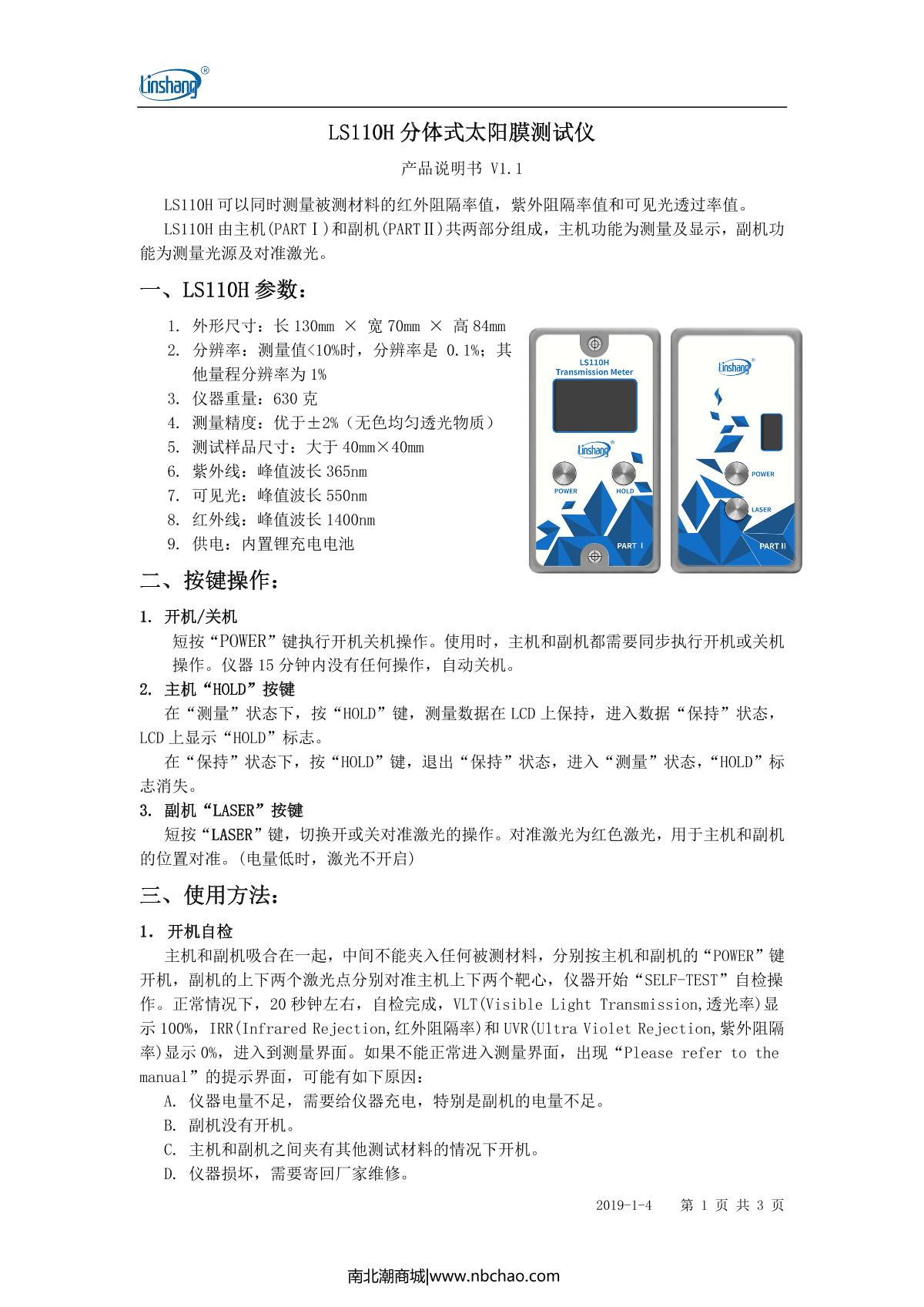 - 4LinShang LS110H Split solar film Tester Manual