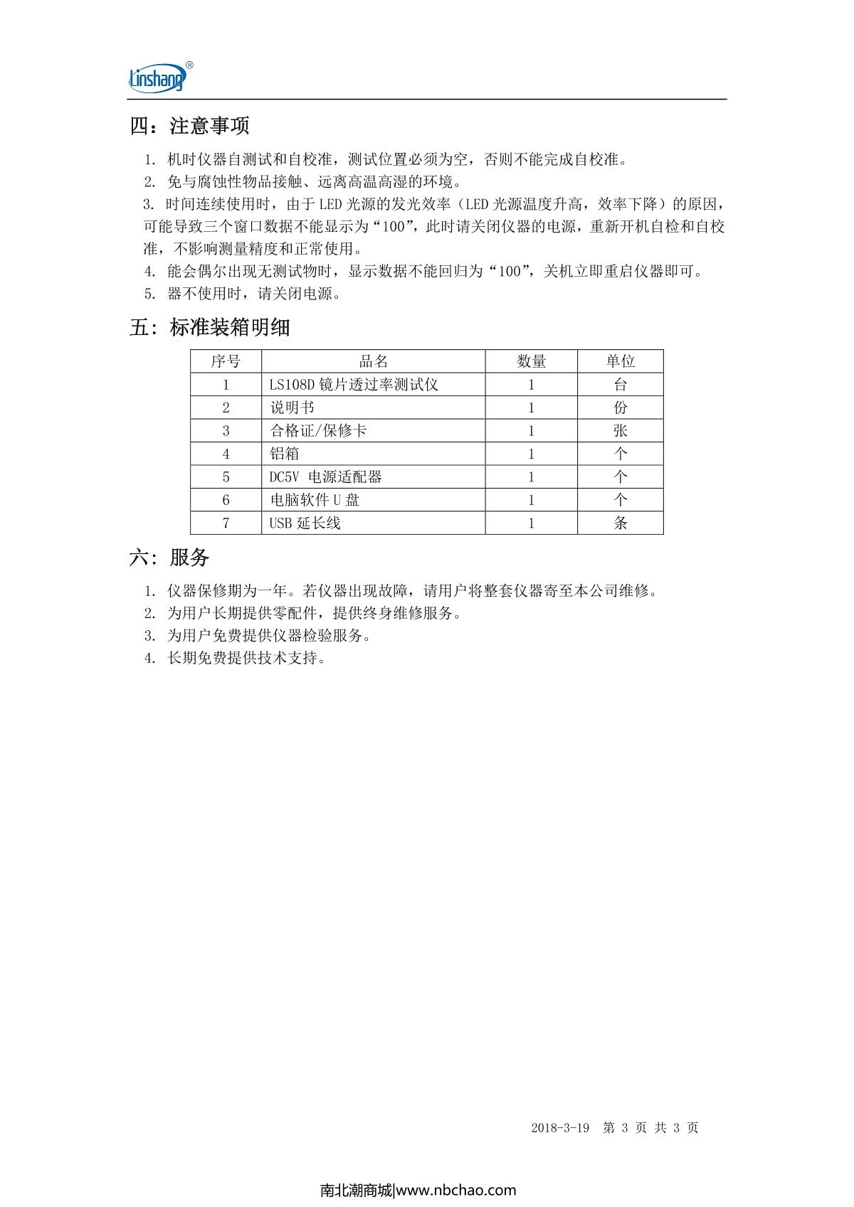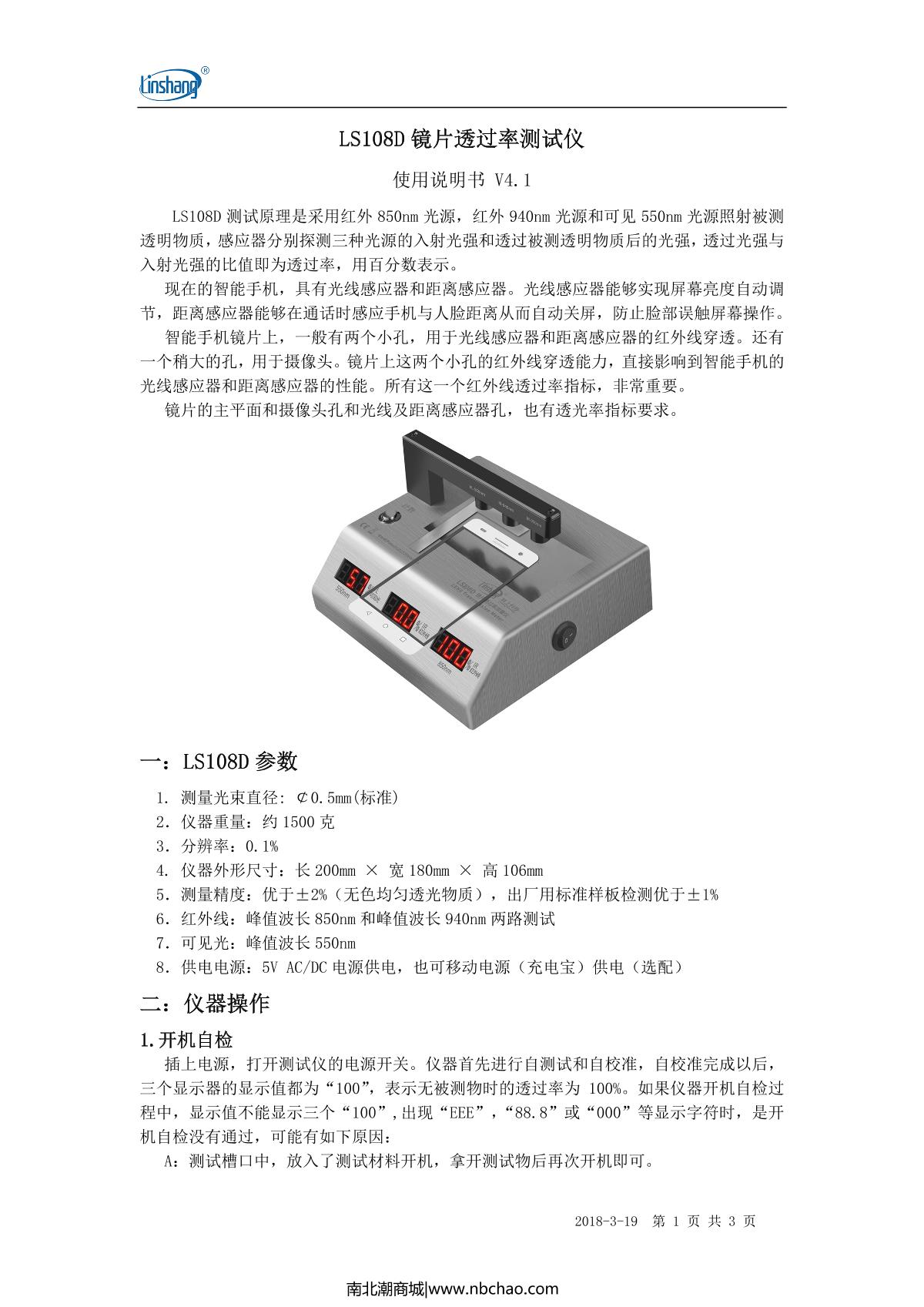 - 10LinShang LS108D Lens transmittance Measurement Instrument Manual