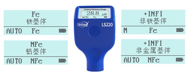 LS220H is a professional instrument for testing the coating thickness on the surface of materials. It is more suitable for commodity inspection, manufacturers and other places. The instrument adopts the magnetic measurement method and the eddy current measurement method, which can detect the thickness of the non-magnetic coating on the ferromagnetic metal substrate and the thickness of the non-conductive coating on the non-magnetic metal substrate, and has an automatic identification function. The instrument can automatically display and Measure the substrate.