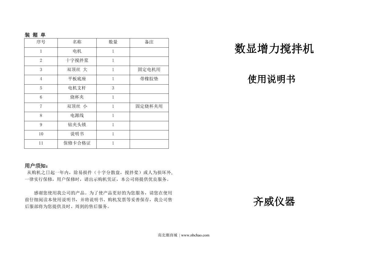 QiWei JB100-SH Electric Power Stirrer Manual,OI