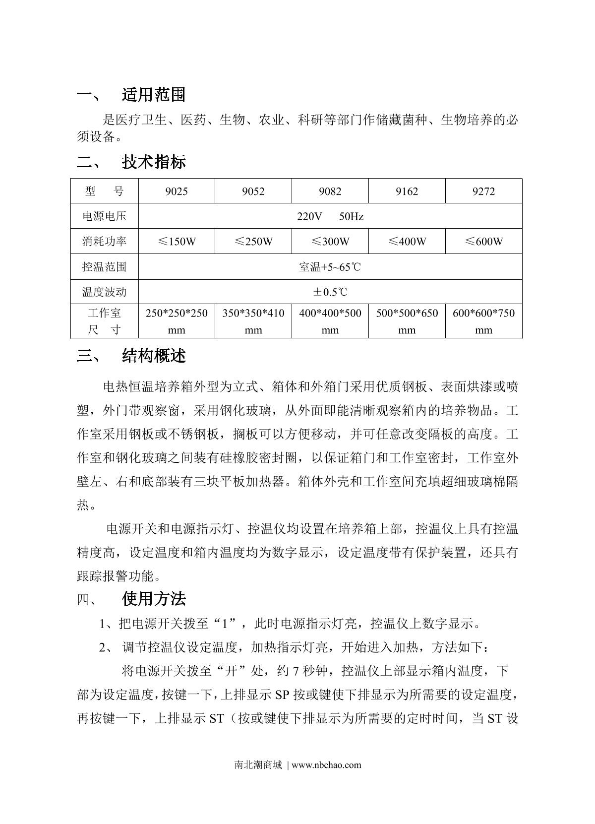 JingQi DNP-9082 Electric Thermostatic Incubator Manual,OI