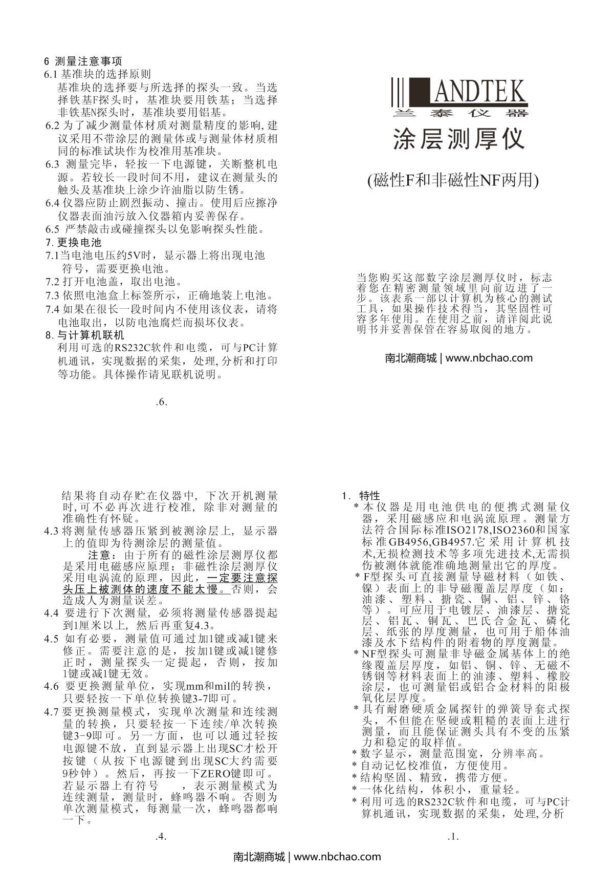 LANDTEK CM8825fn Coating Thickness Gauge Manual,OI