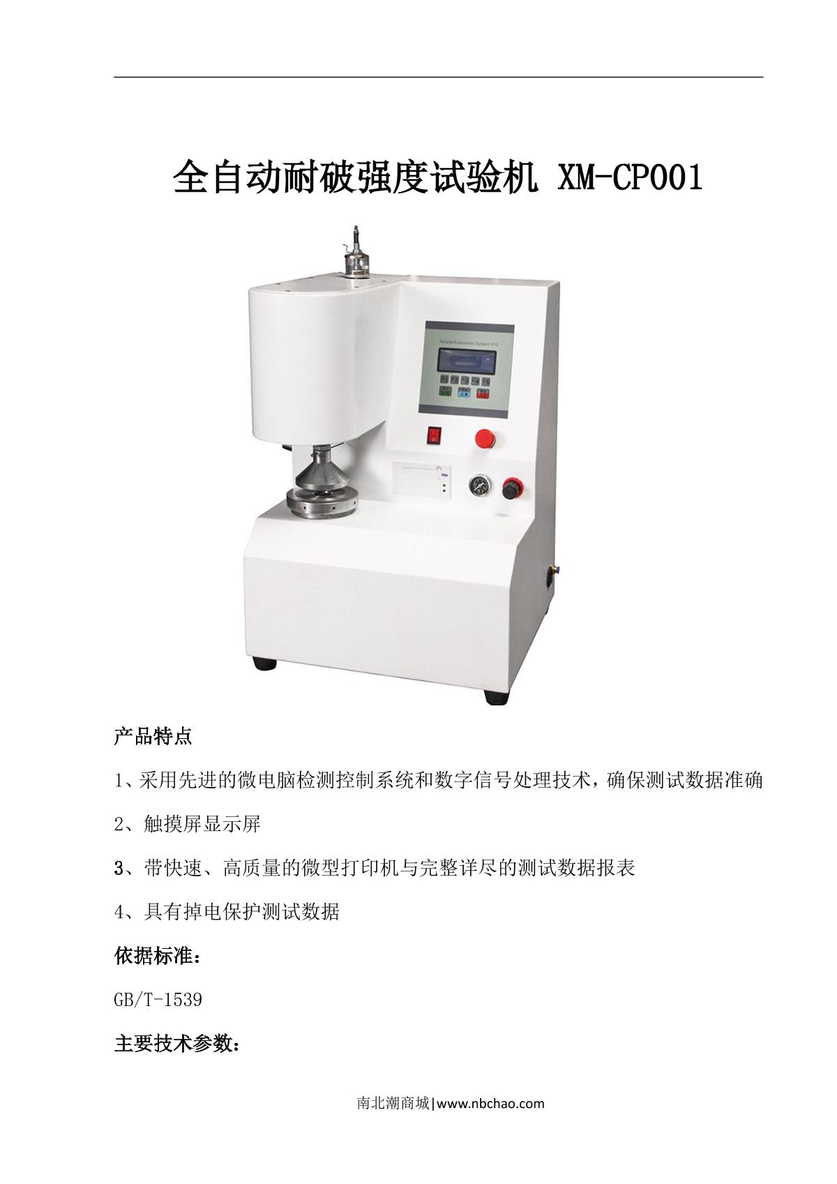 xiangmin XM-CP001 Automatic bursting Strength Tester brochure