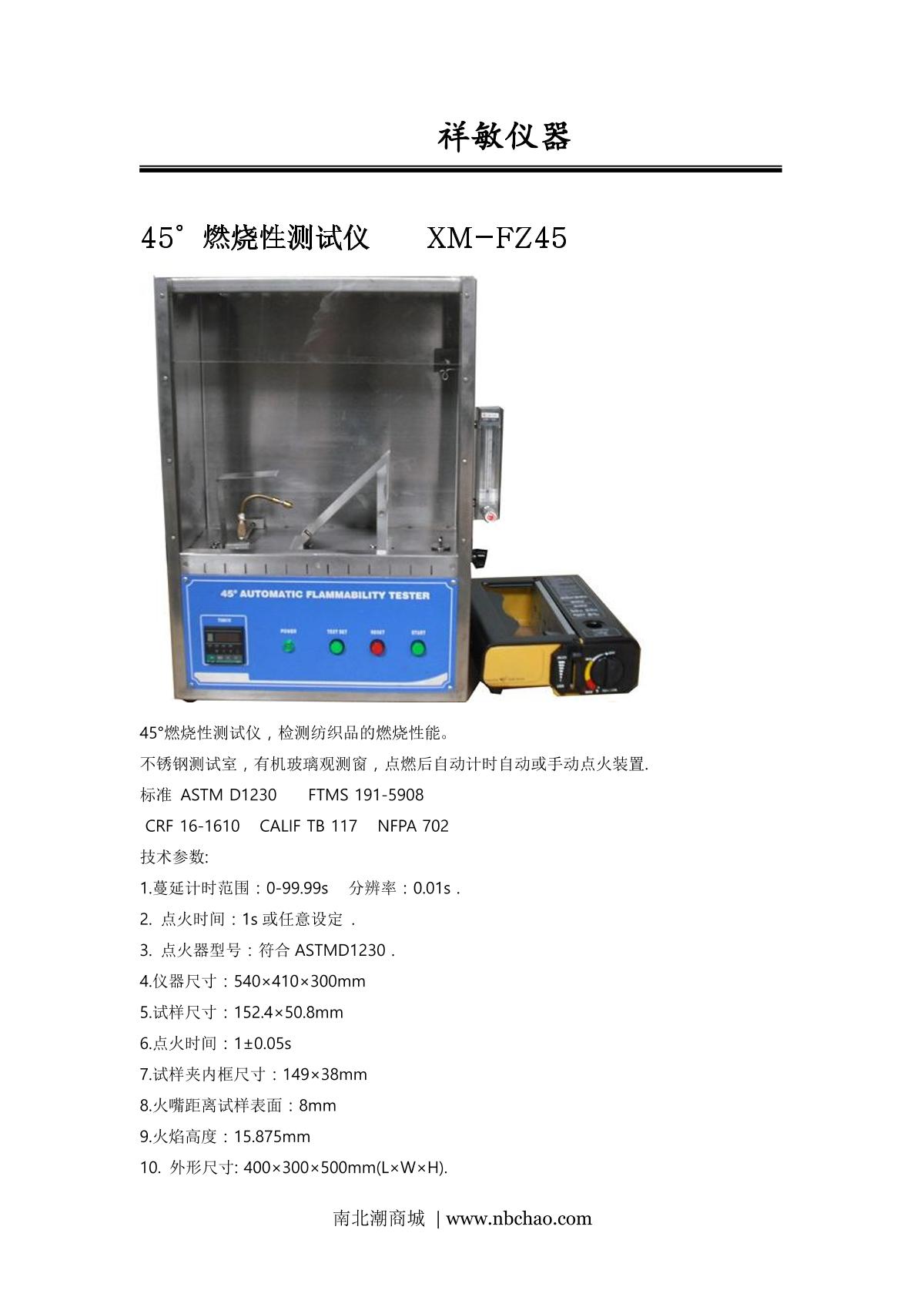 xiangmin XM-R45 45 degree combustion testing machine brochure