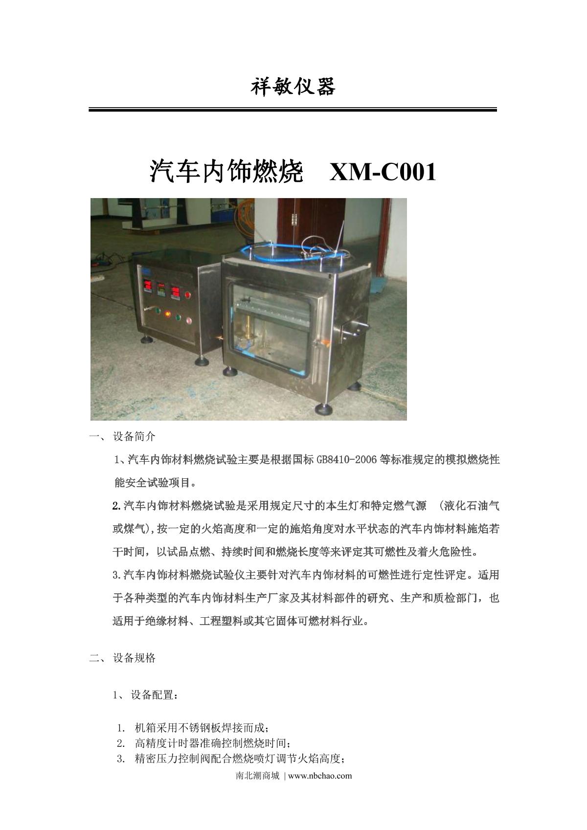 - 10xiangmin XM-C001 Automotive interior combustion testing machine brochure