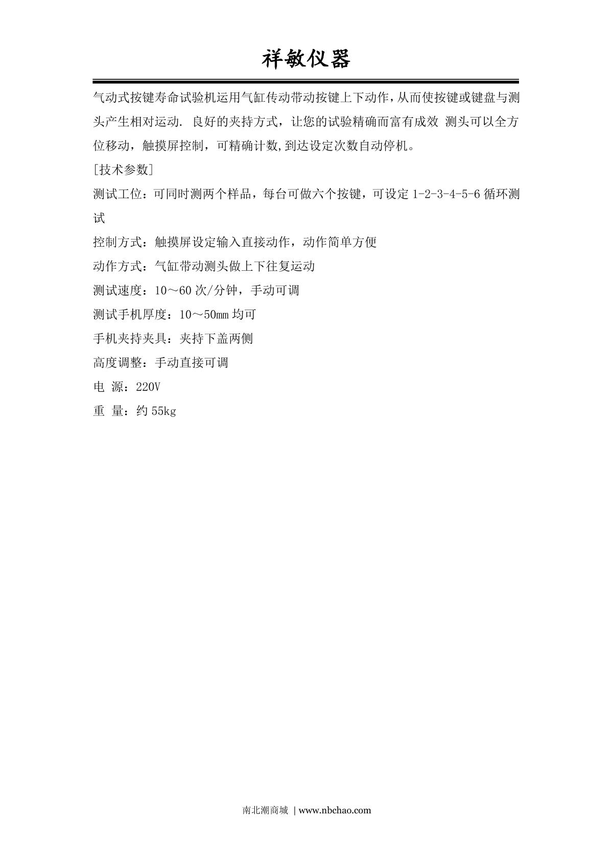 xiangmin XM-6900 Pneumatic button Life Cycle Tester brochure