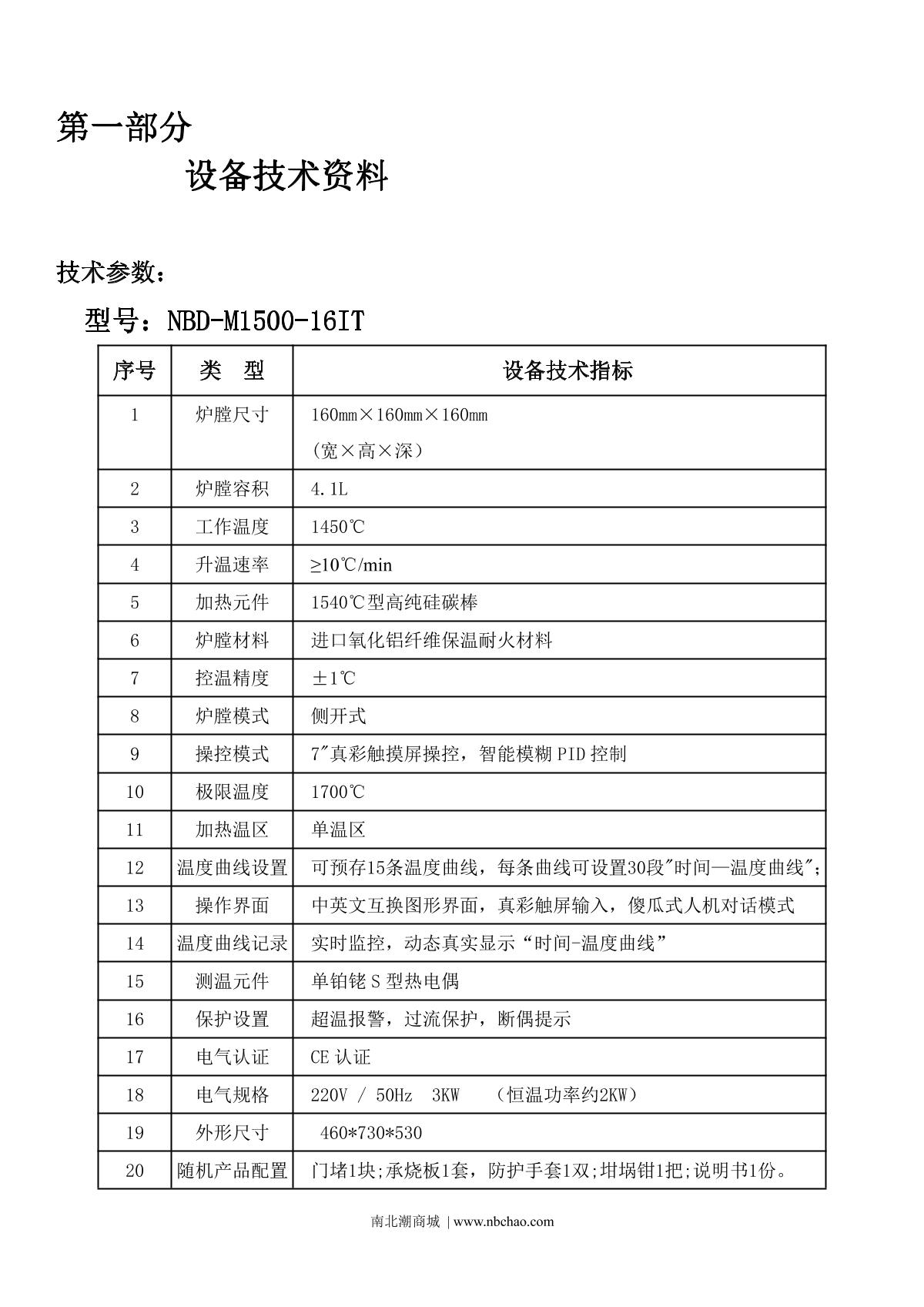 NuoBaDi NBD-M1500-16IT M16 box furnace brochure