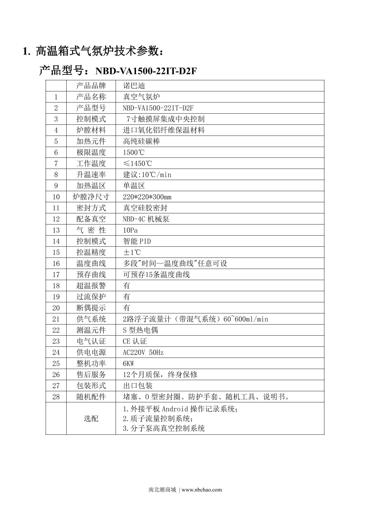 NuoBaDi NBD-VA1500-22IT-D2F Vacuum atmosphere furnace brochure