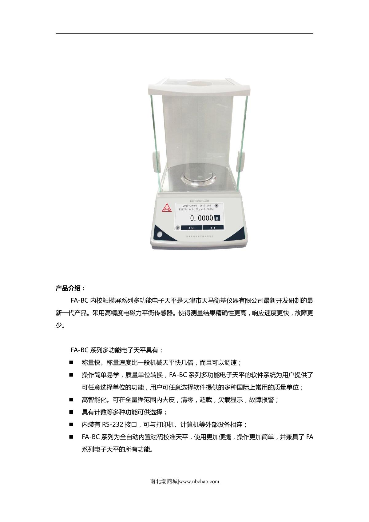 TianMa FA2104BC Multifunctional Electronic Balance brochure