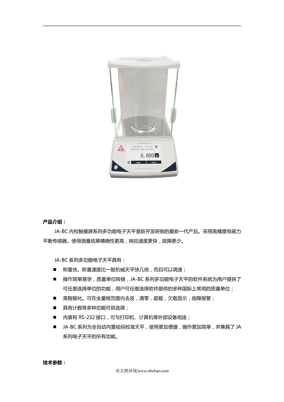 TianMa JA10003BC Multifunctional Electronic Balance brochure