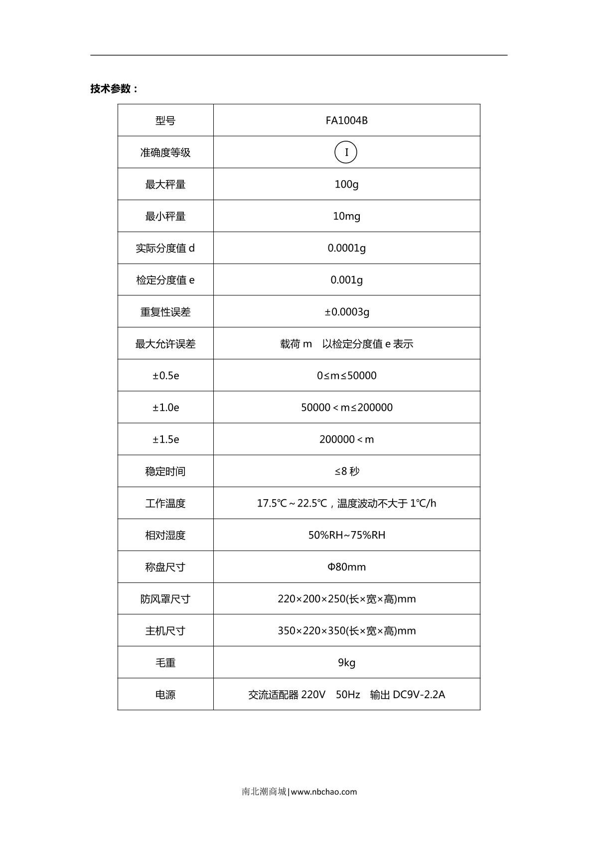 TianMa FA1004B Electronic Balance brochure