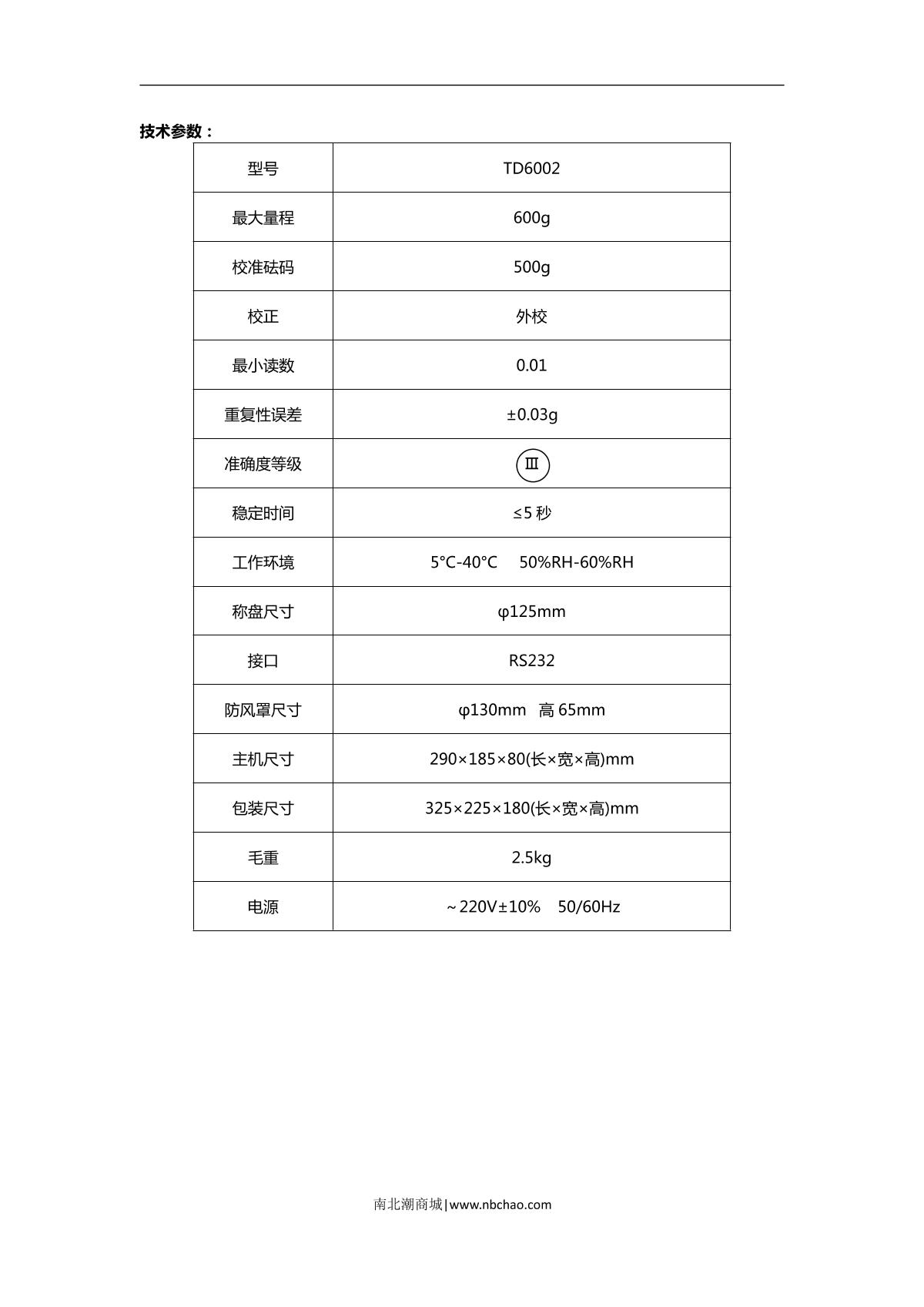 TianMa TD6002 Electronic Balance brochure
