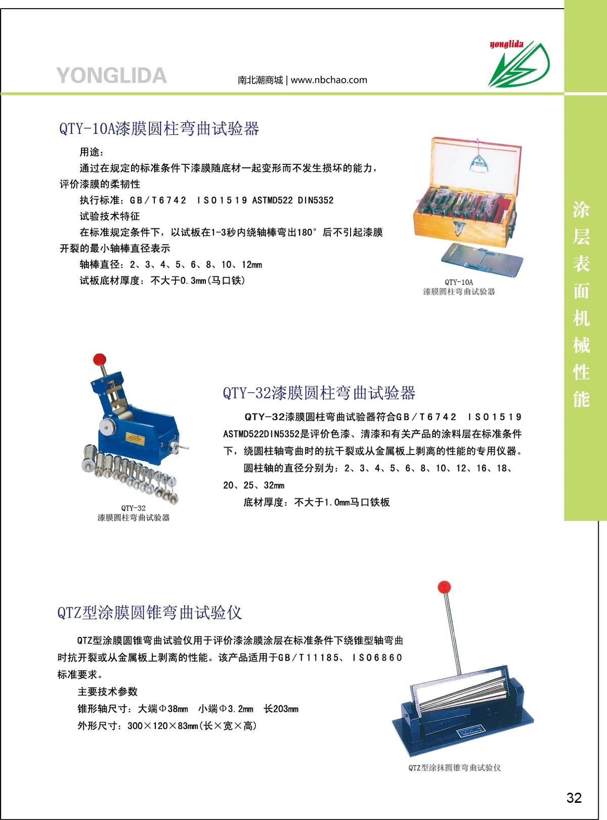 YongLiDa QTY-10A Lacquer film cylindrical mandrel bending Tester brochure