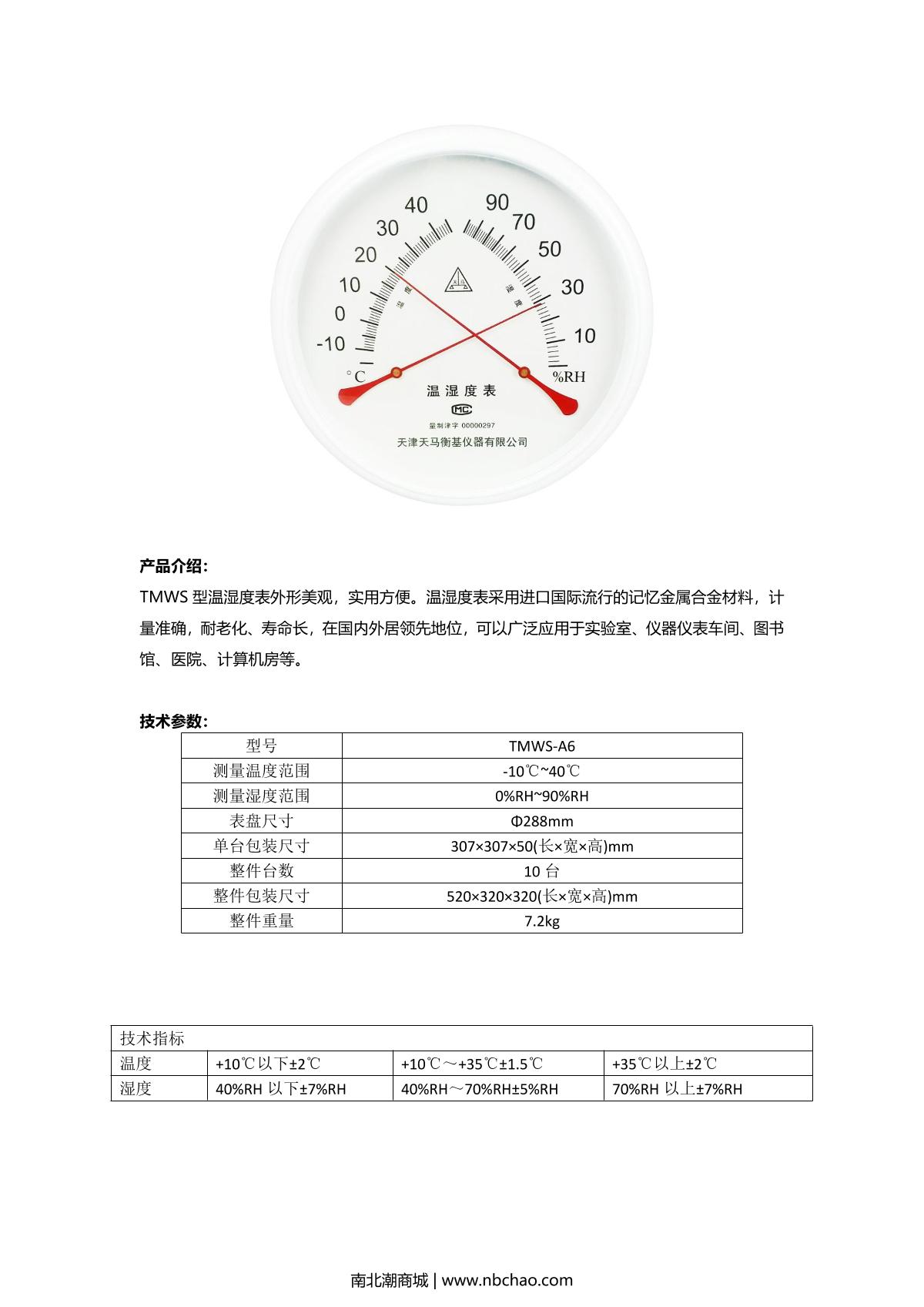 TianMa TMWS-A6 temperature and humidity meter brochure