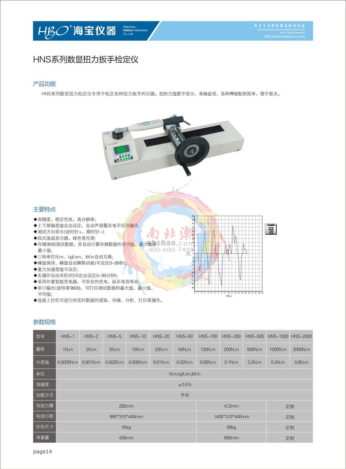 HBO HNS-1 Torque wrench verification instrument brochure