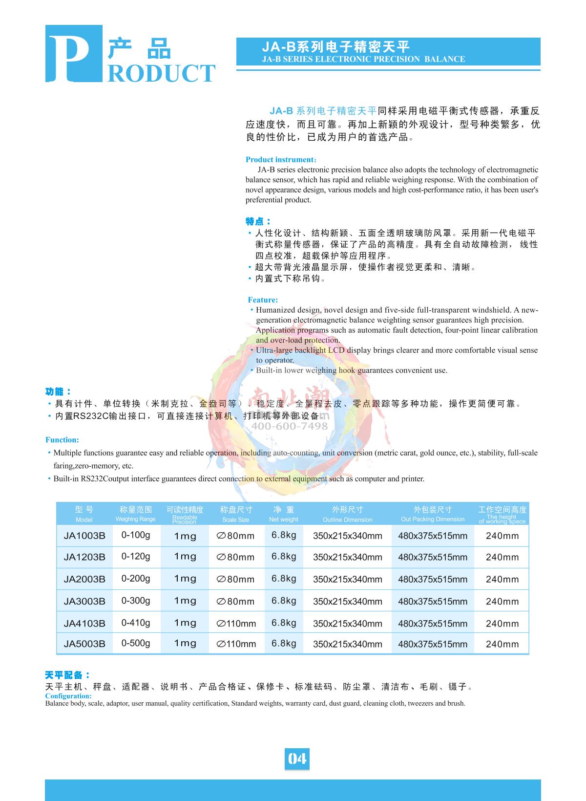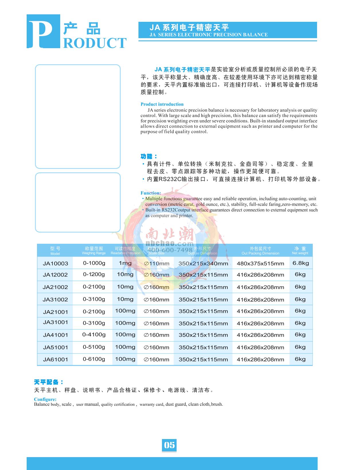- 5TianMa JA1003 JA Series Electronic Balance brochure