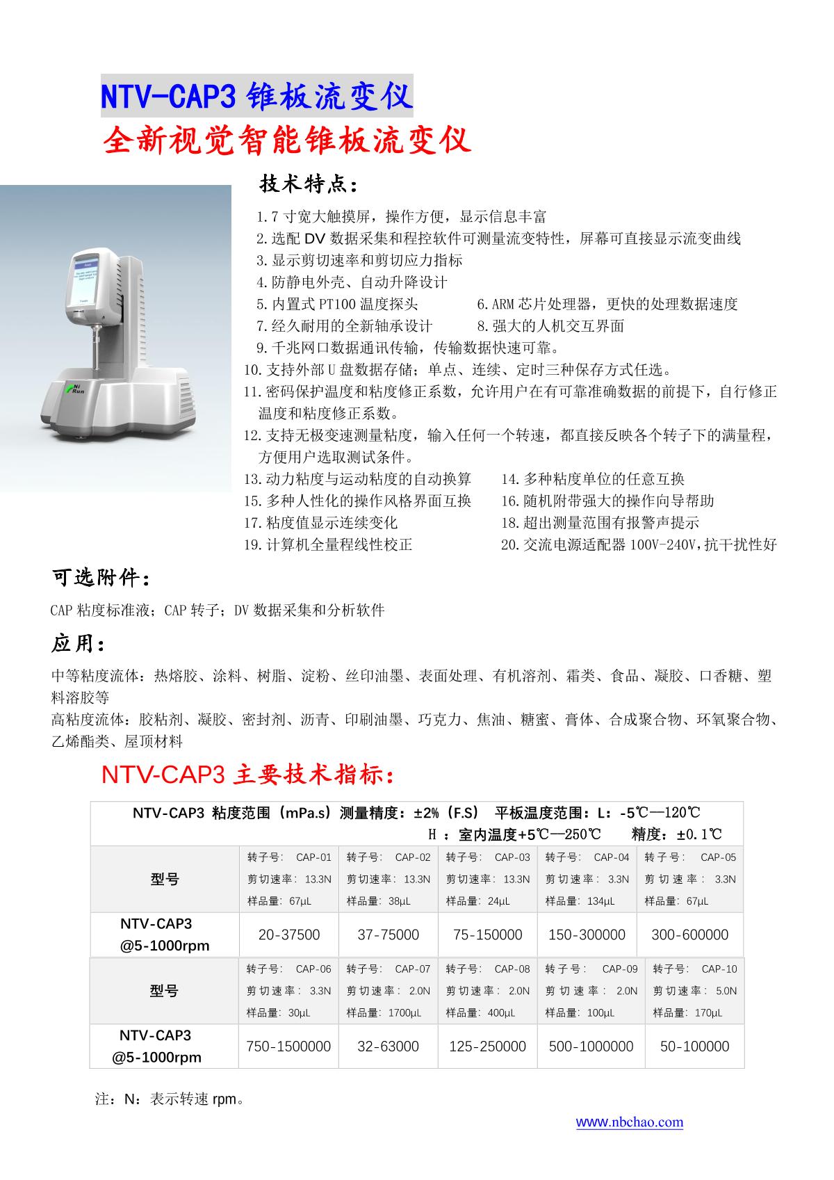 NiRun NTV-CAP3H Cone Plate Rheometer brochure