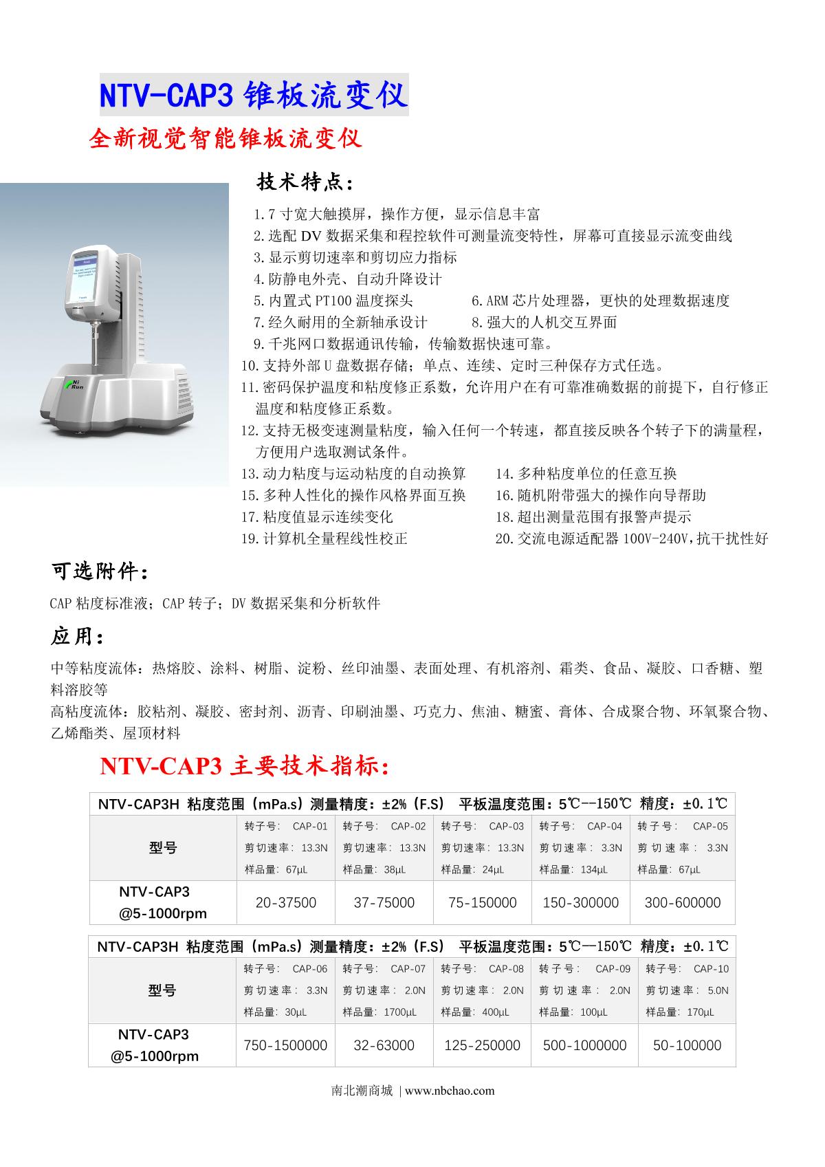 - 3NiRun NTV-CAP3H Cone Plate Rheometer brochure