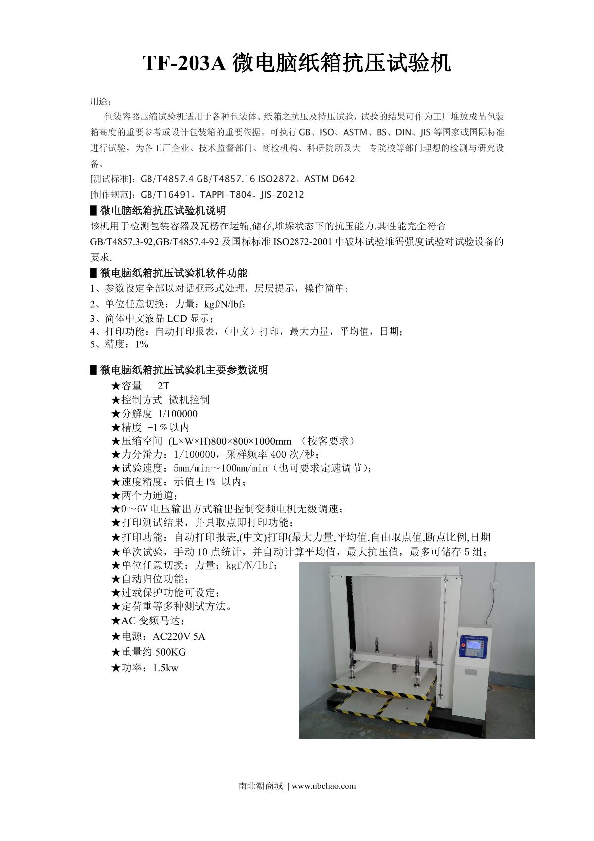 TengFei TF-203A Microcomputer carton compression testing machine brochure
