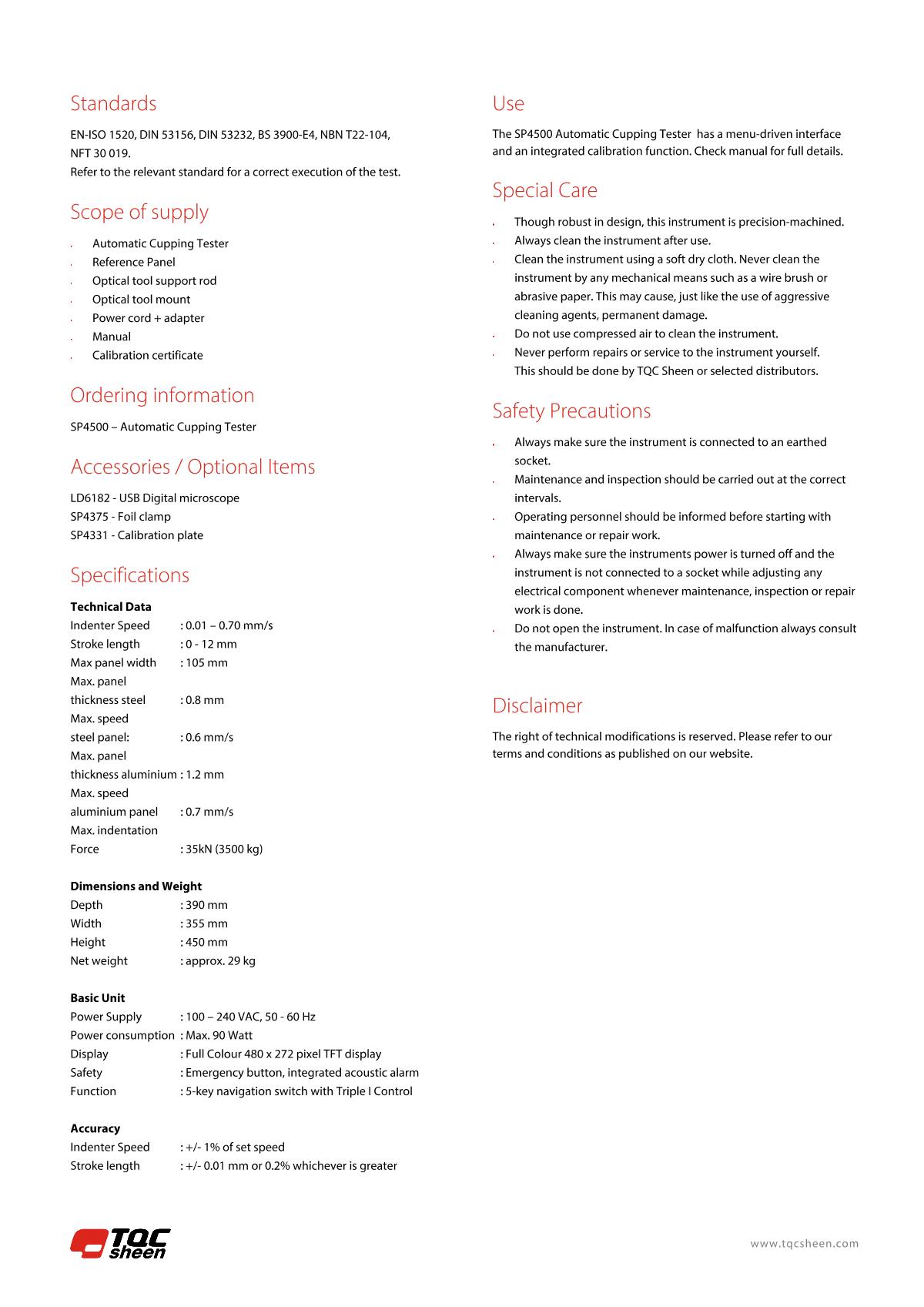 TQC sheen SP4500 Automatic cupping instrument brochure